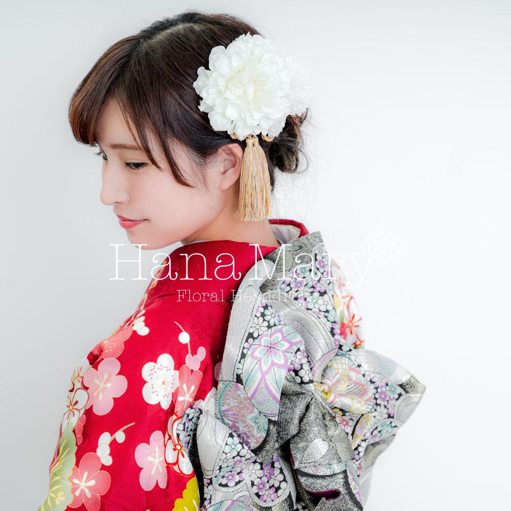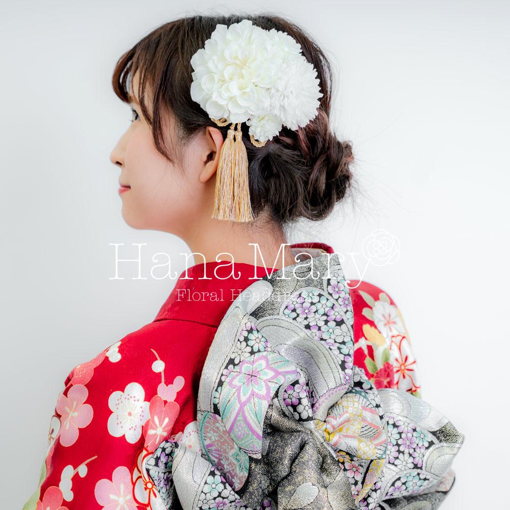 HanaMaryの髪飾りは生花をリアルに再現したアートフラワーと呼ばれるハイクオリティーな造花を使用しています。耐久性に優れ、成人式・卒業式やウェディングなどに何度でも繰り返し使用することができます。