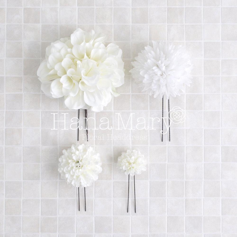 その日のヘアスタイルによって自由に一輪一輪配置できます。お花の数が多い場合でも、アメピンを追加して簡単にしっかりと固定できます。