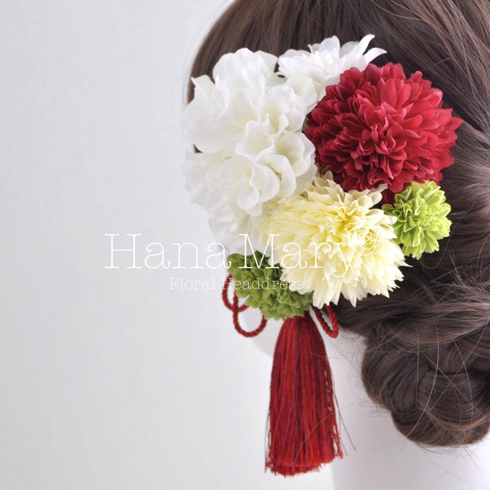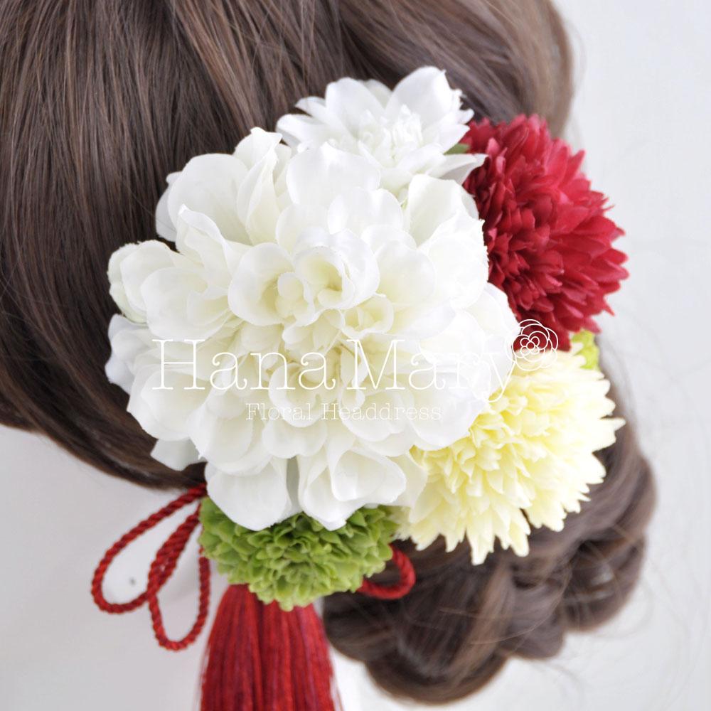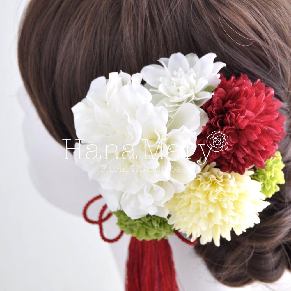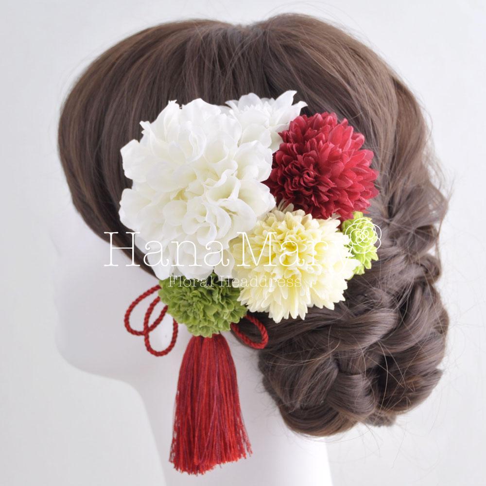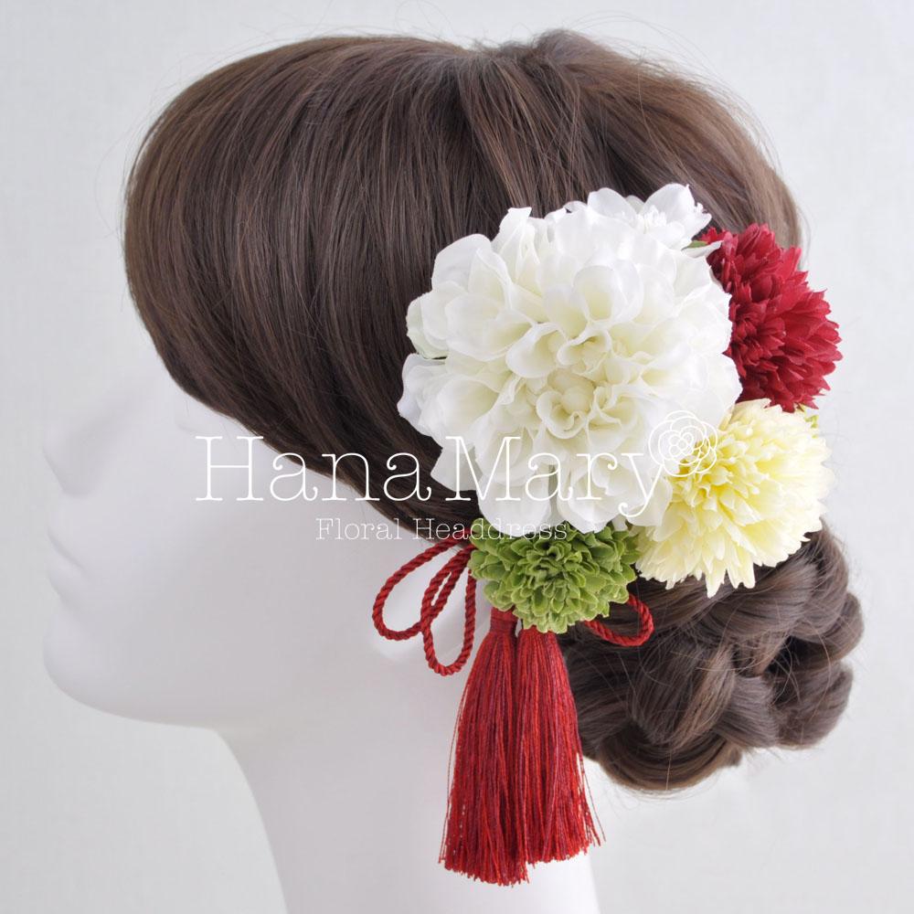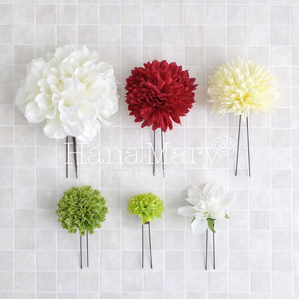 HanaMaryの髪飾りは生花をリアルに再現したアートフラワーと呼ばれるハイクオリティーな造花を使用しています。耐久性に優れ、成人式・卒業式やウェディングなどに何度でも繰り返し使用することができます。