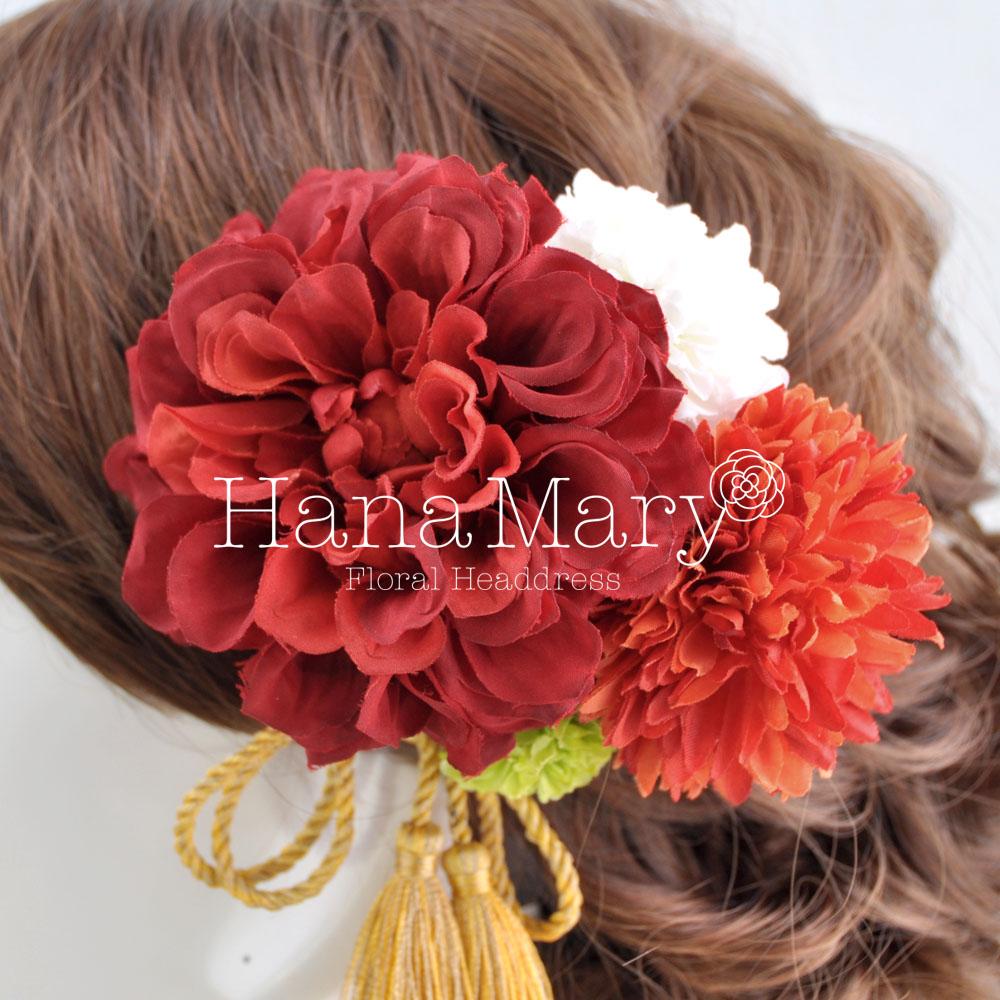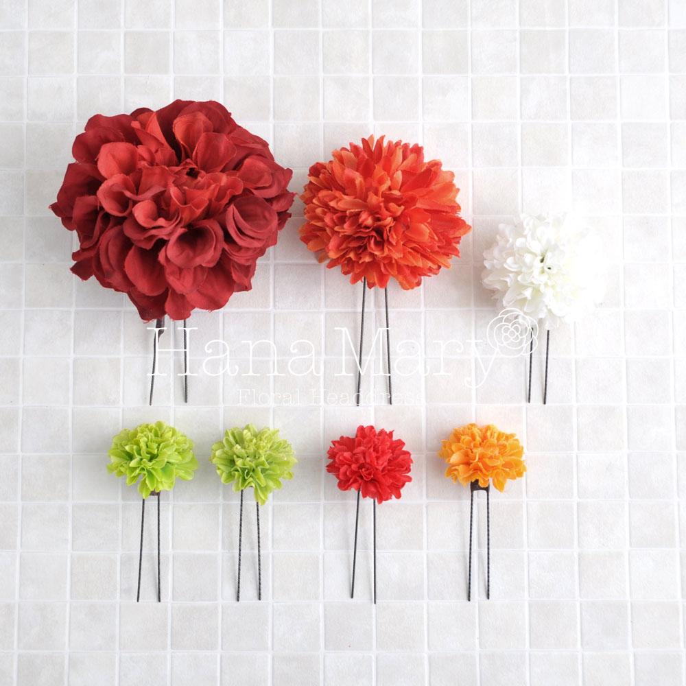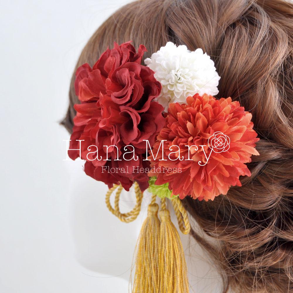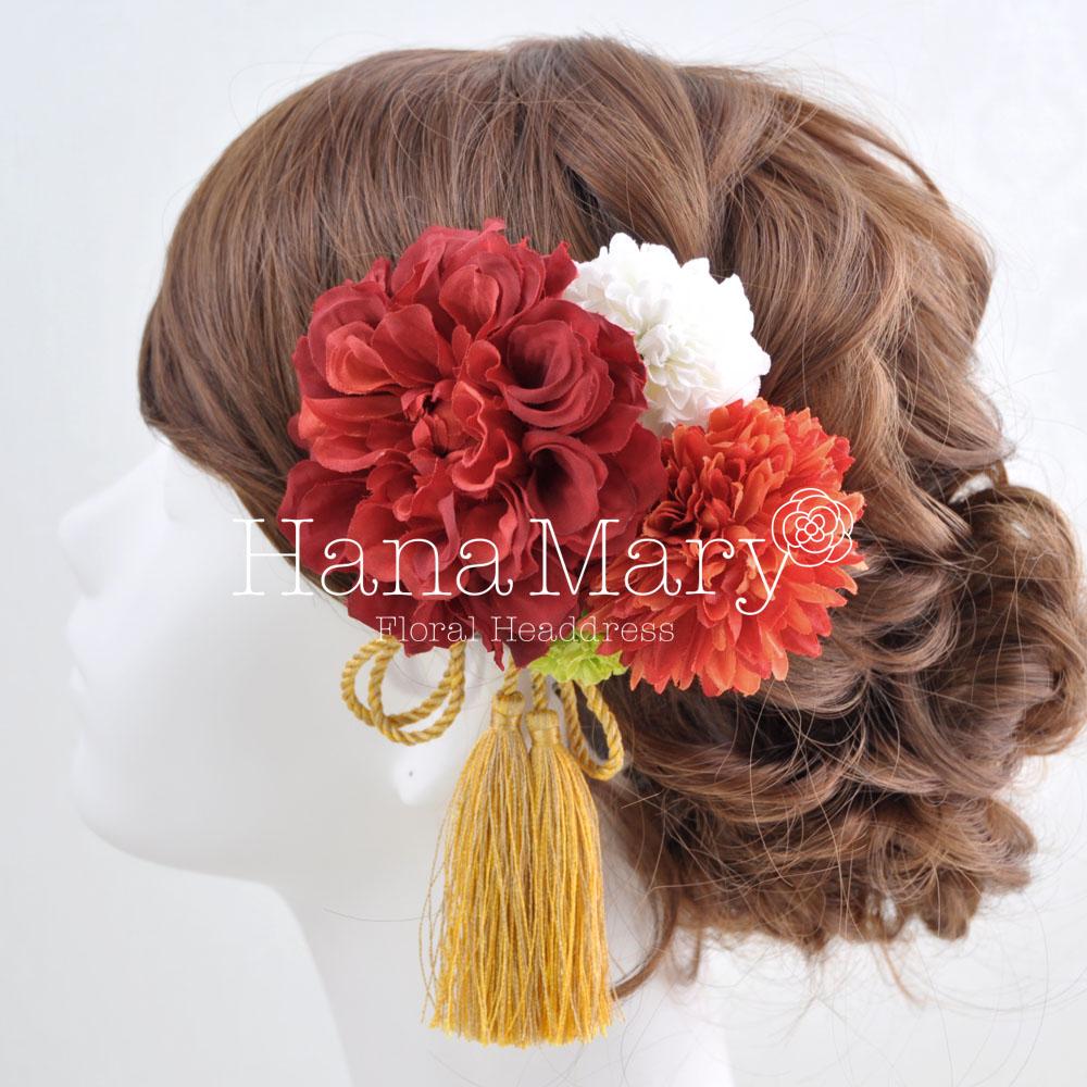 洋の花を使いながらも日本的でモダンな印象にスタイリング出来る人気の髪飾りです☆