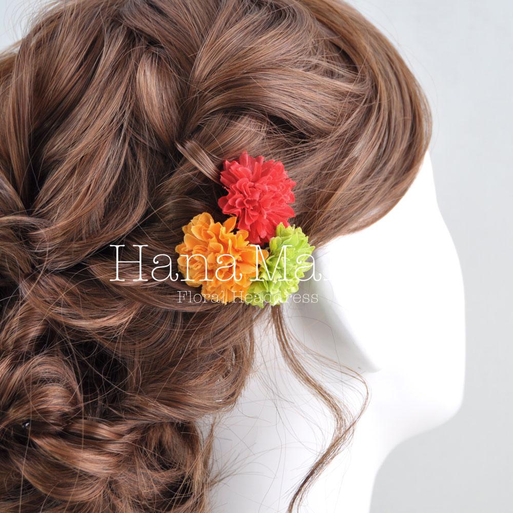 その日のヘアスタイルによって自由に一輪一輪配置できます。お花の数が多い場合でも、アメピンを追加して簡単にしっかりと固定できます。