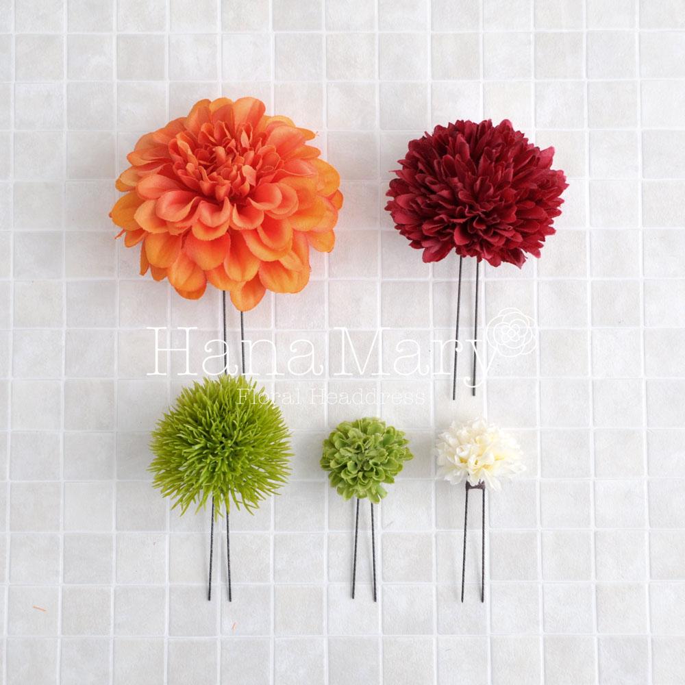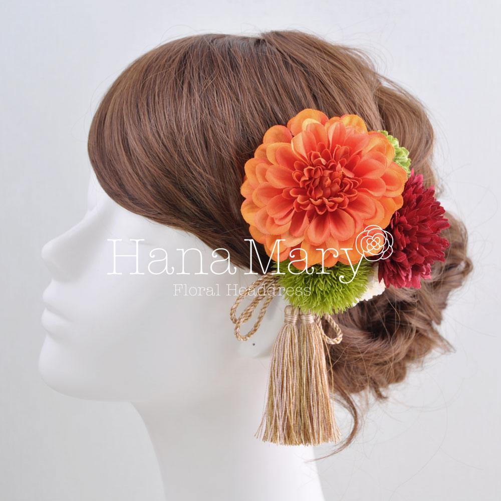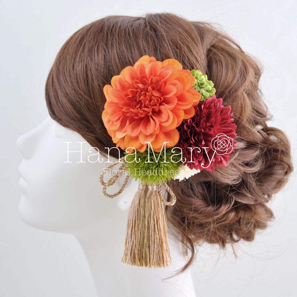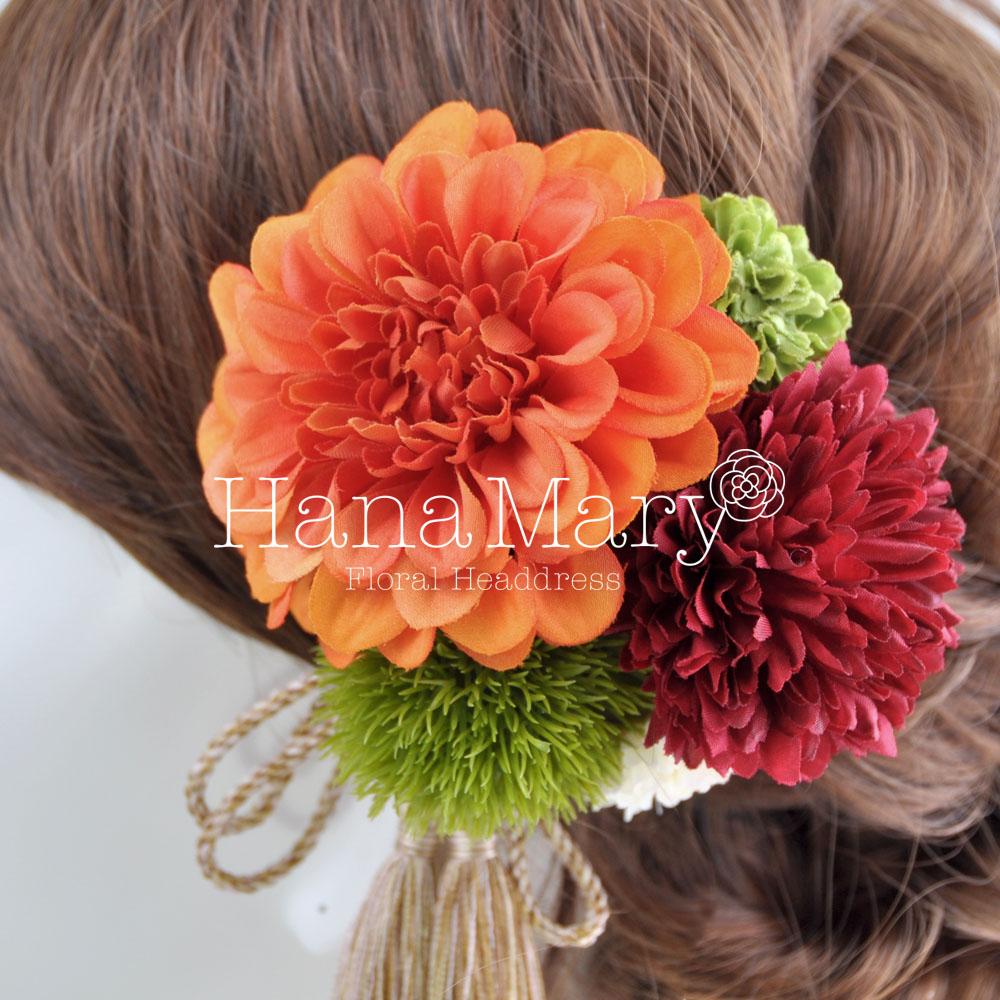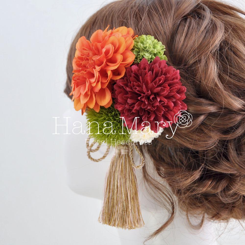 てまり草やピンポンマムで古典的な配色でアレンジした髪飾りです。