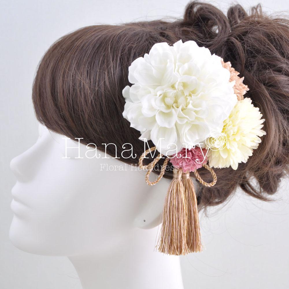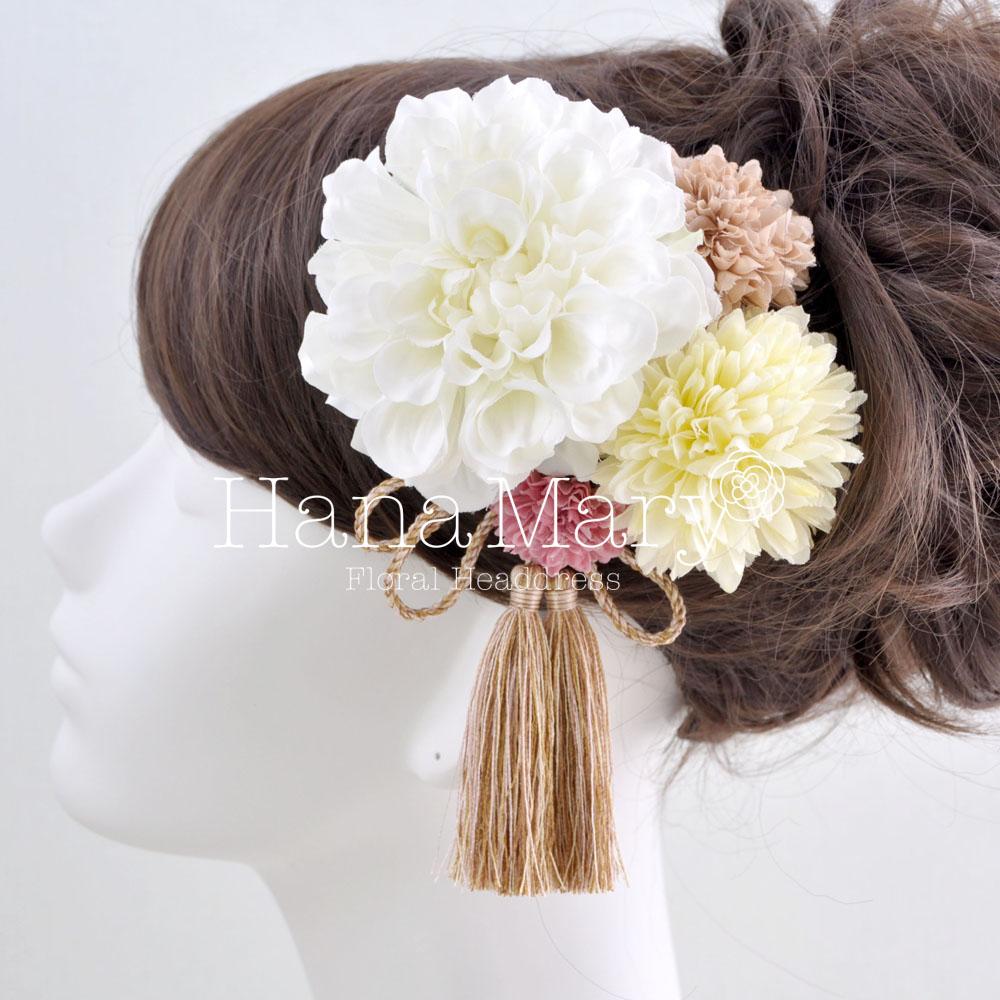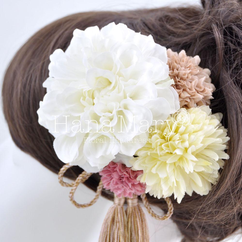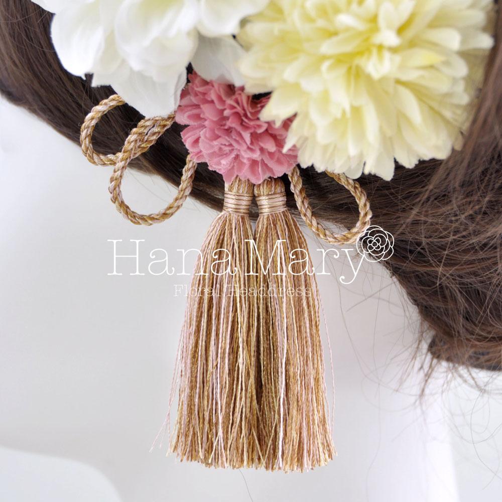 HanaMaryの髪飾りは生花をリアルに再現したアートフラワーと呼ばれるハイクオリティーな造花を使用しています。耐久性に優れ、成人式・卒業式やウェディングなどに何度でも繰り返し使用することができます。