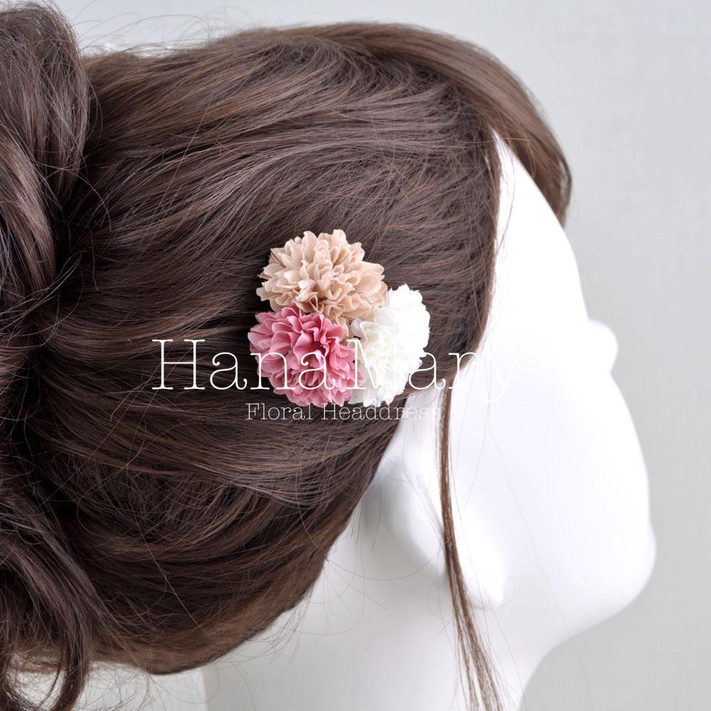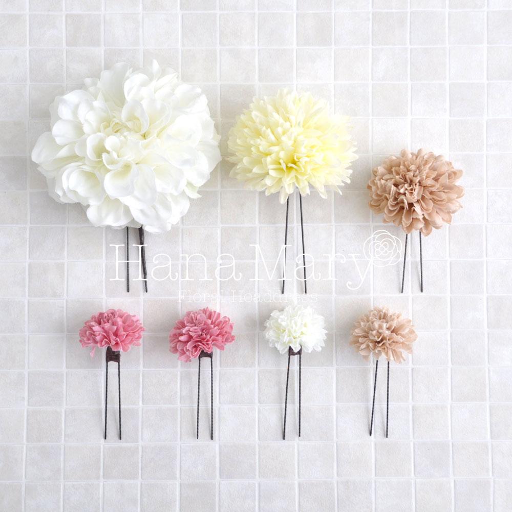 その日のヘアスタイルによって自由に一輪一輪配置できます。お花の数が多い場合でも、アメピンを追加して簡単にしっかりと固定できます。