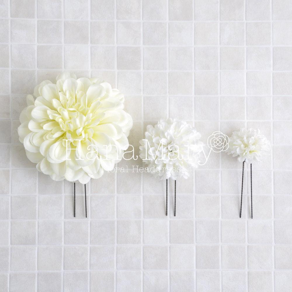 その日のヘアスタイルによって自由に一輪一輪配置できます。お花の数が多い場合でも、アメピンを追加して簡単にしっかりと固定できます。