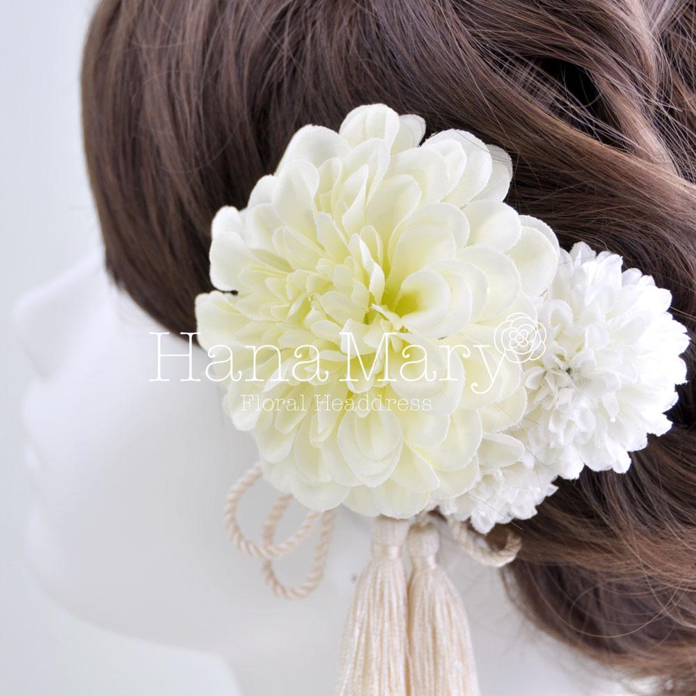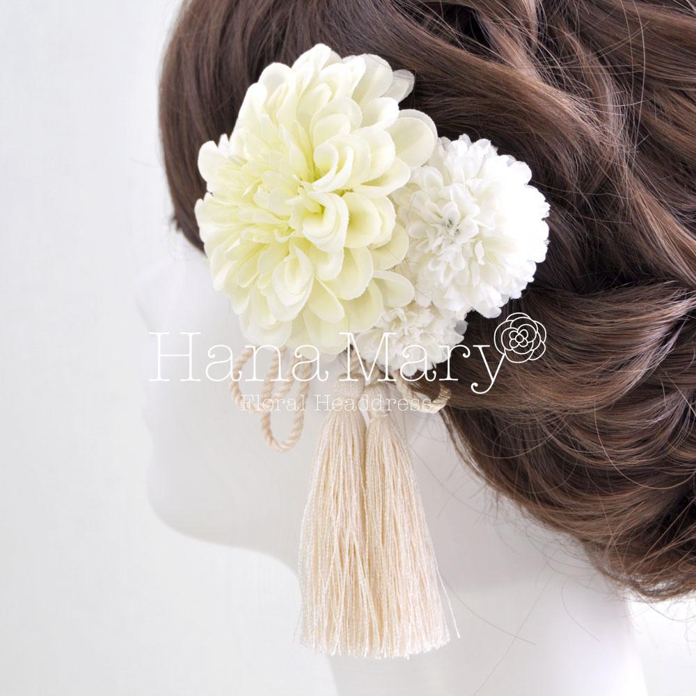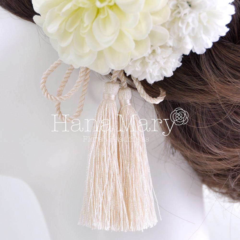 HanaMaryの髪飾りは生花をリアルに再現したアートフラワーと呼ばれるハイクオリティーな造花を使用しています。耐久性に優れ、成人式・卒業式やウェディングなどに何度でも繰り返し使用することができます。