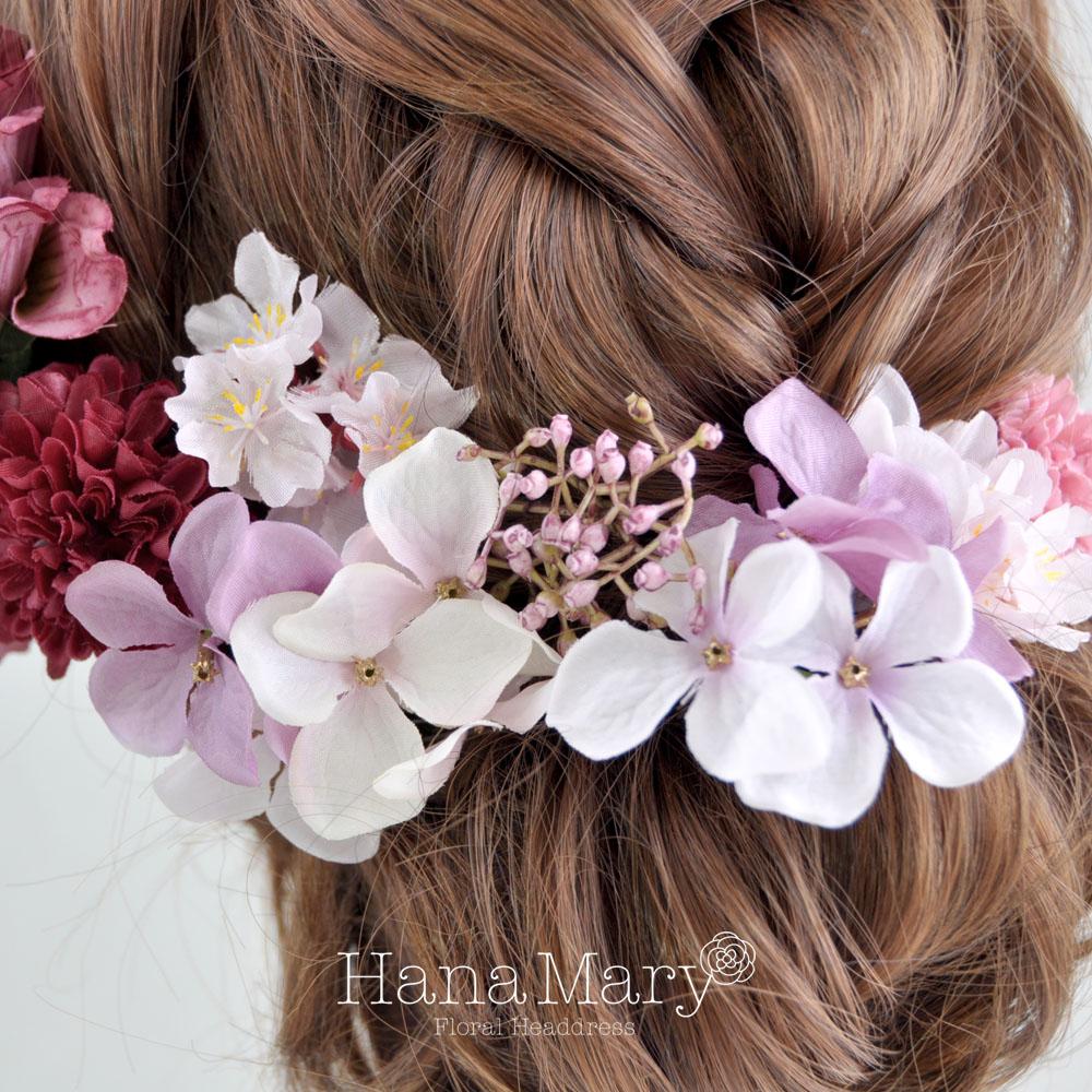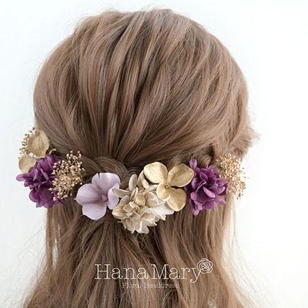 HanaMaryの髪飾りは生花をリアルに再現したアートフラワーと呼ばれるハイクオリティーな造花を使用しています。耐久性に優れ、成人式・卒業式やウェディングなどに何度でも繰り返し使用することができます。