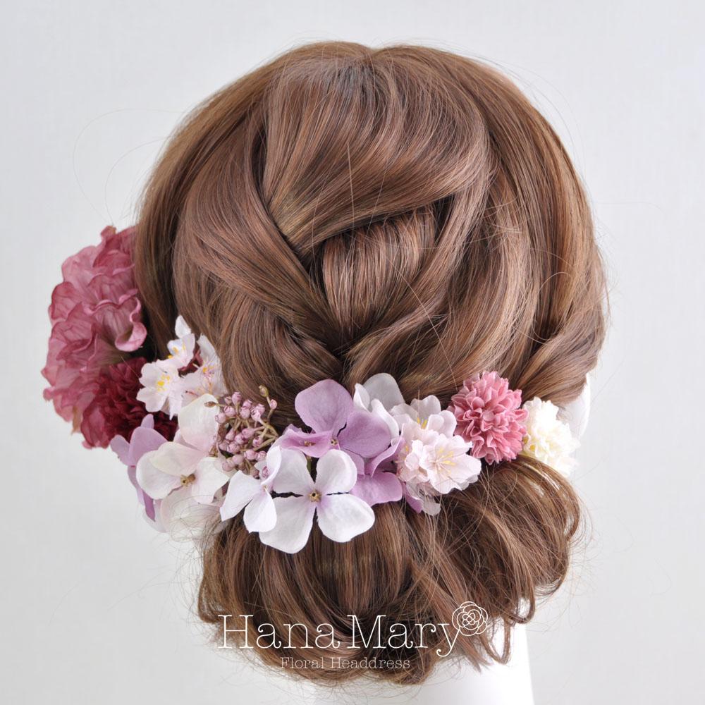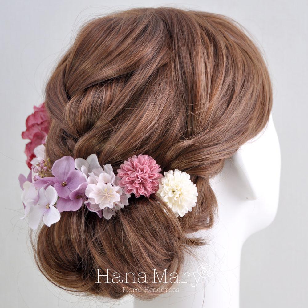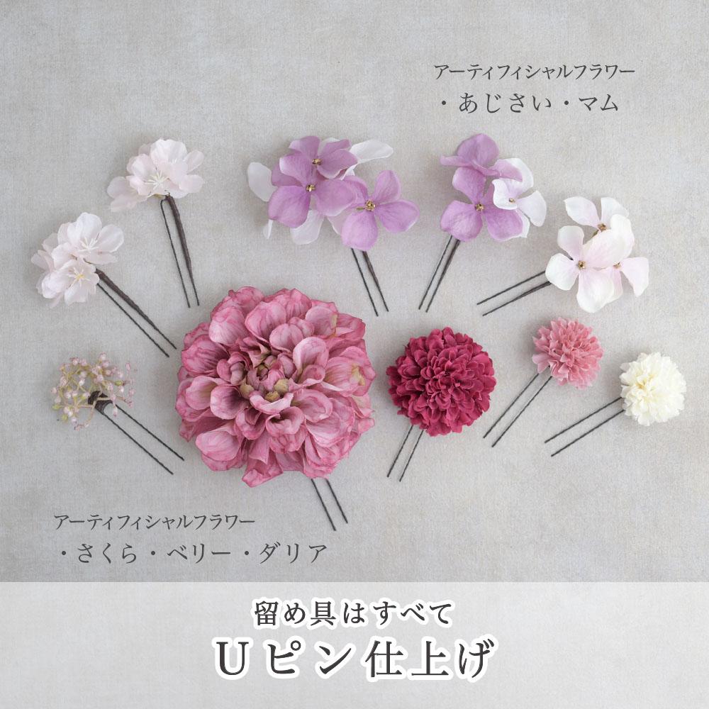その日のヘアスタイルによって自由に一輪一輪配置できます。お花の数が多い場合でも、アメピンを追加して簡単にしっかりと固定できます。