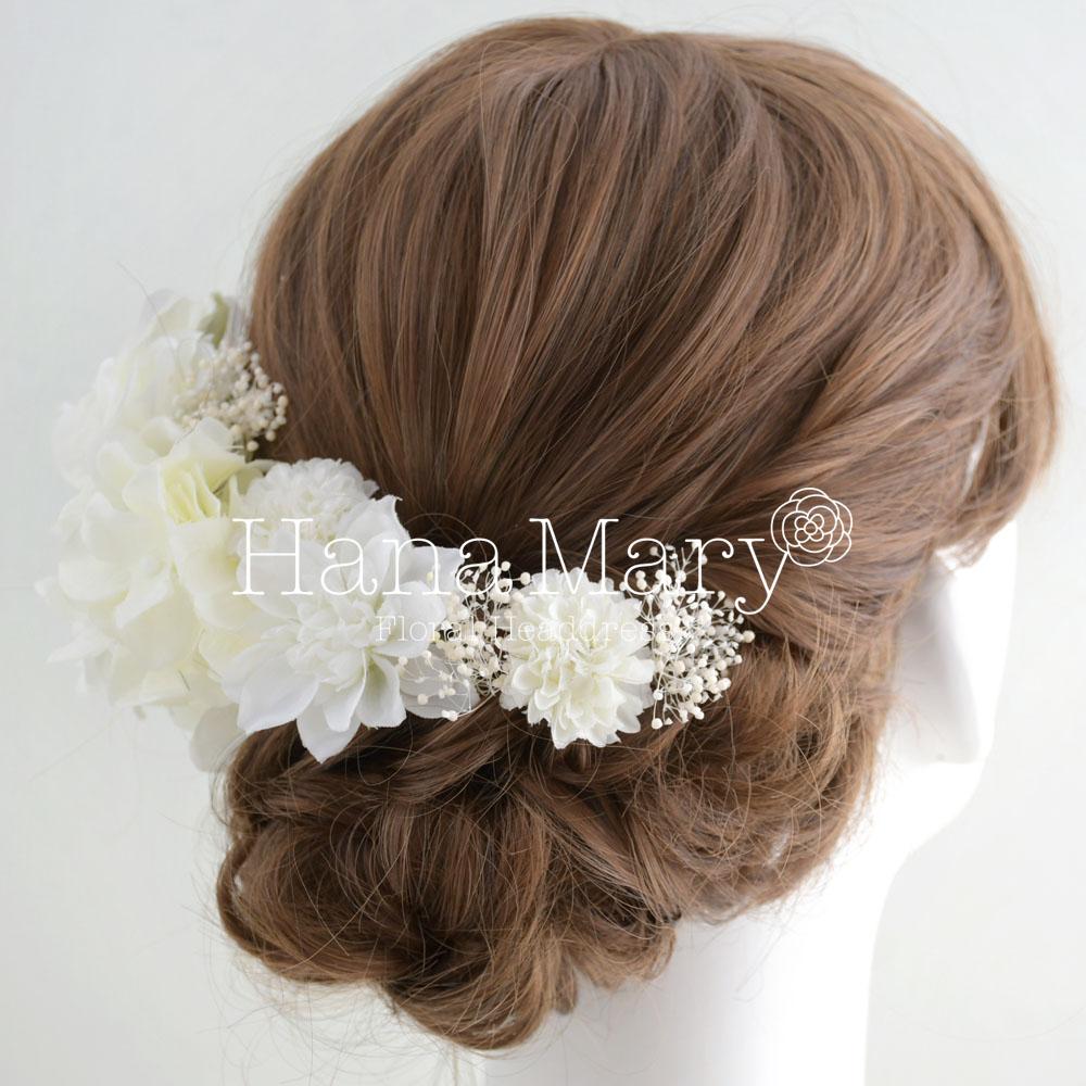 白麗花ブーケ 結婚式 成人式 卒業式 振袖 袴 髪飾り 着物 白