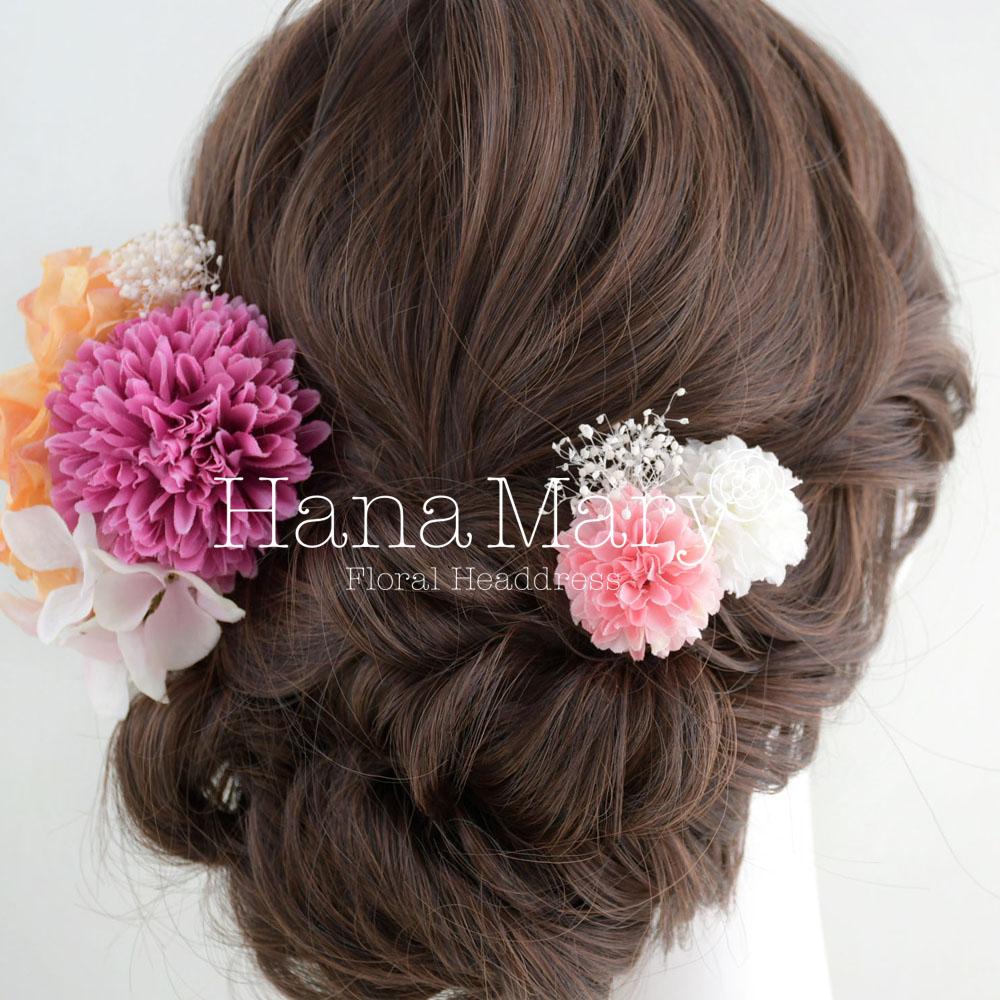 HanaMaryの髪飾りは生花をリアルに再現したアートフラワーと呼ばれるハイクオリティーな造花を使用しています。耐久性に優れ、成人式・卒業式やウェディングなどに何度でも繰り返し使用することができます。