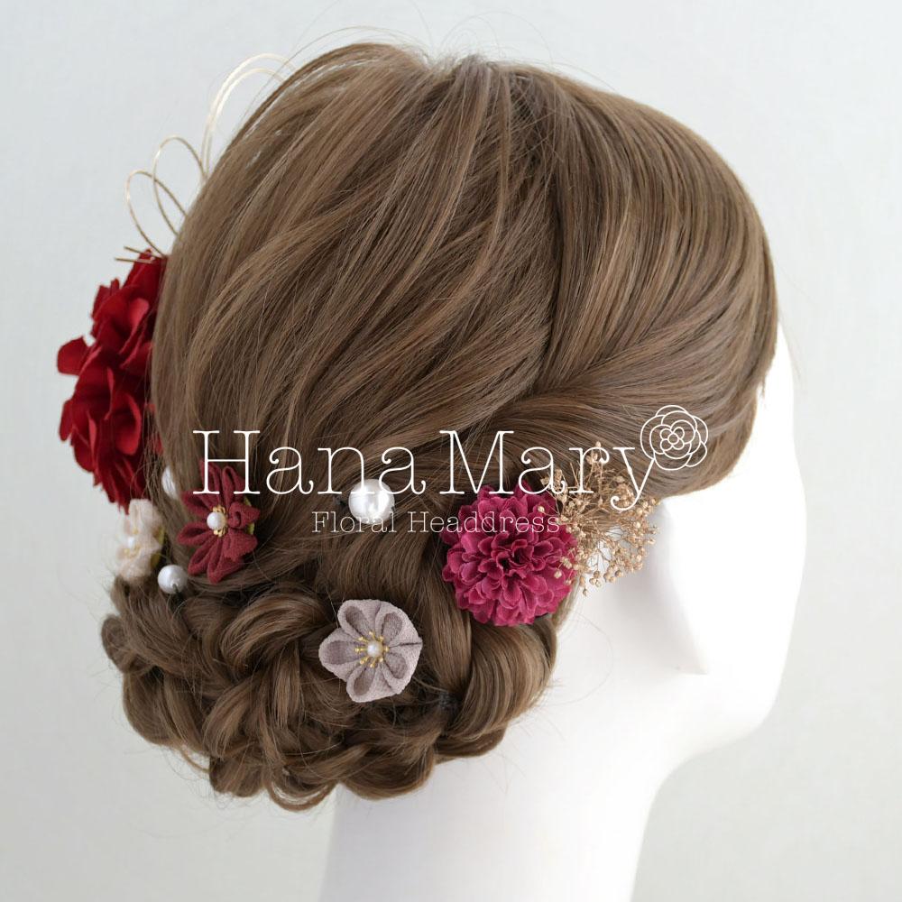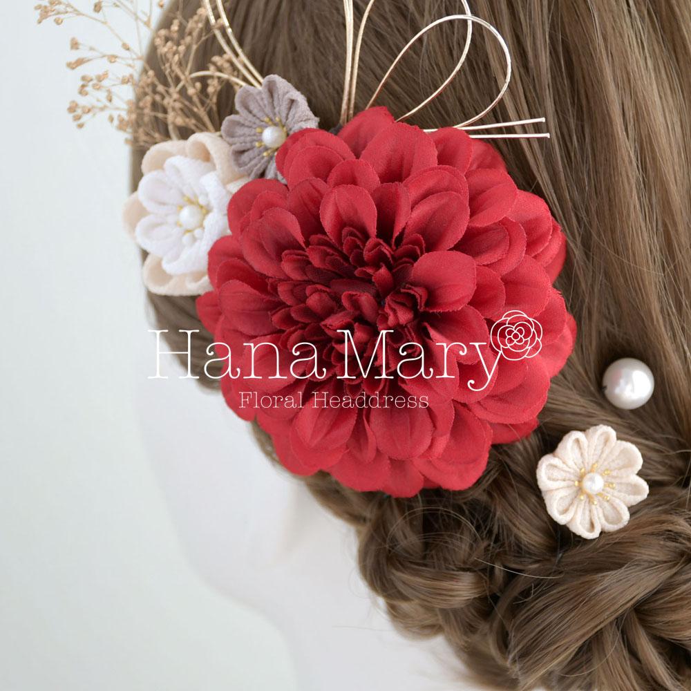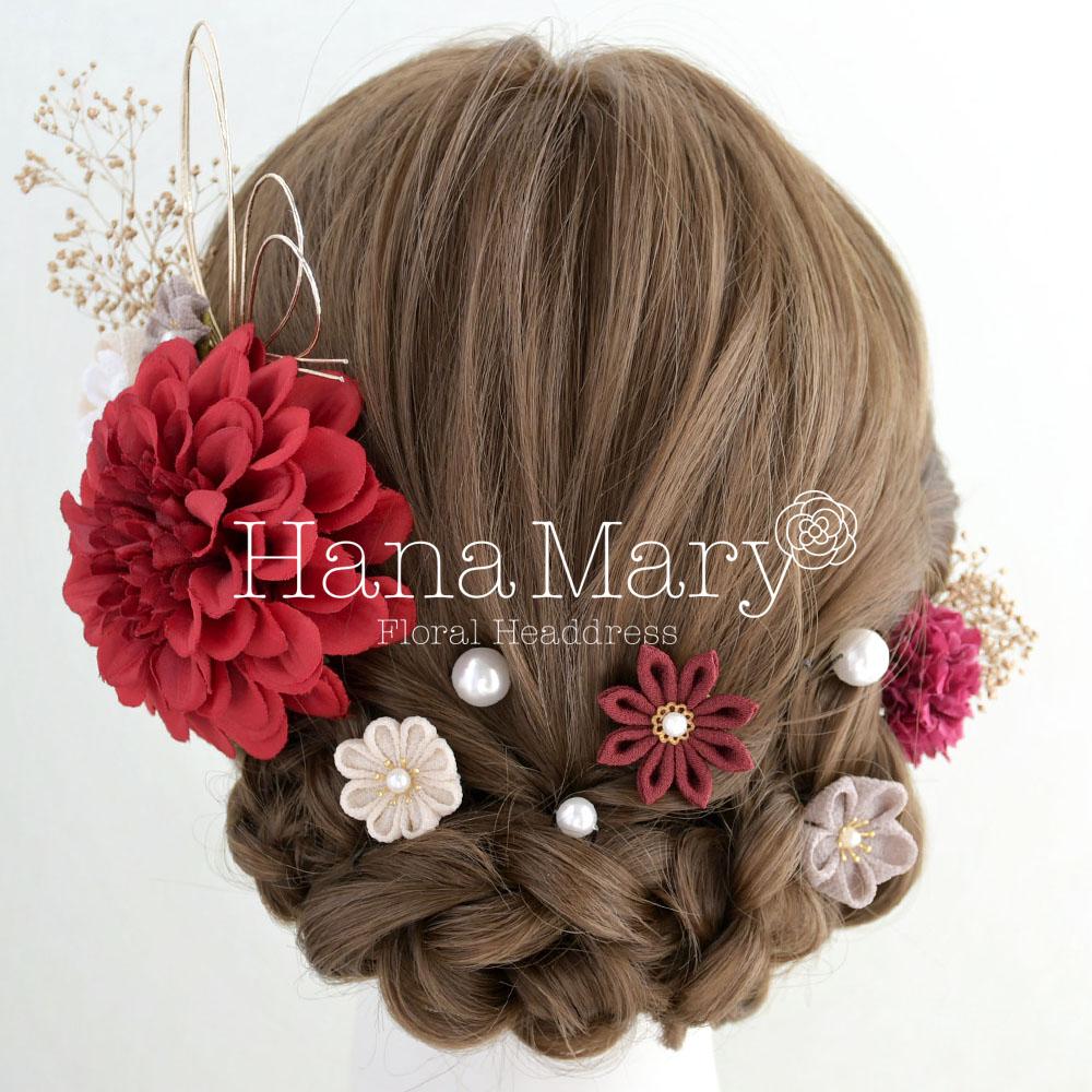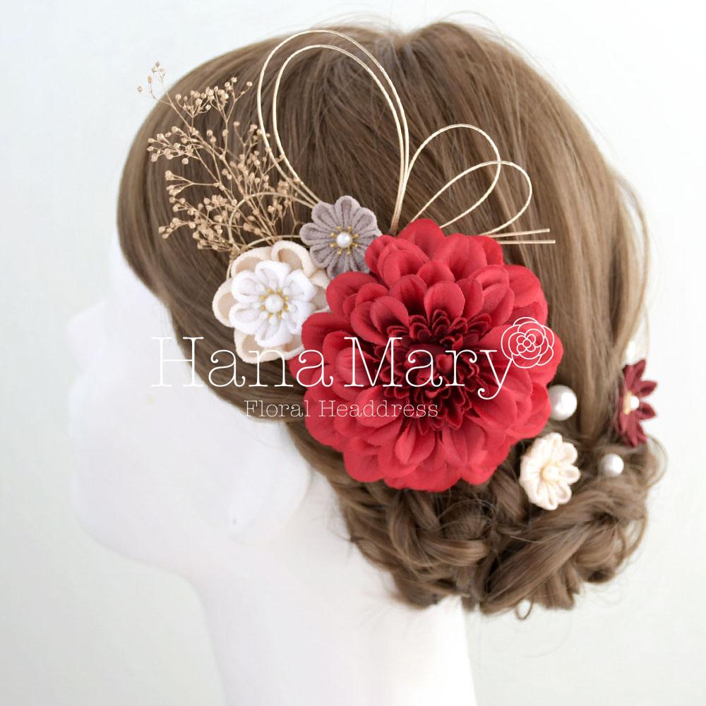 ジニアとつまみ細工【赤 白】成人式 卒業式 結婚式 振袖 袴 髪飾り 着物 和装