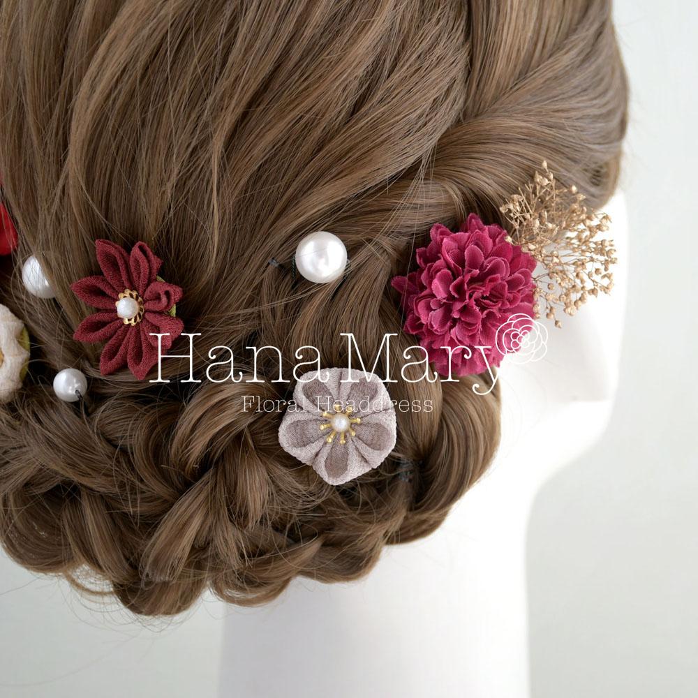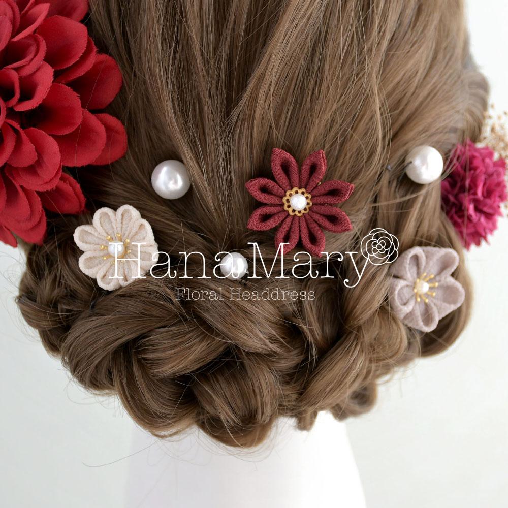 HanaMaryの髪飾りは生花をリアルに再現したアートフラワーと呼ばれるハイクオリティーな造花を使用しています。耐久性に優れ、成人式・卒業式やウェディングなどに何度でも繰り返し使用することができます。