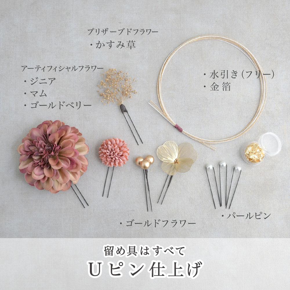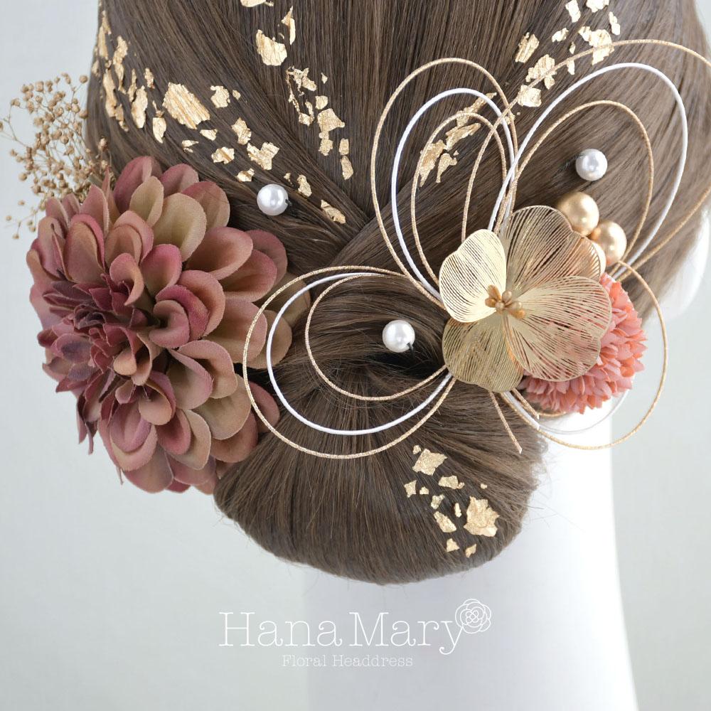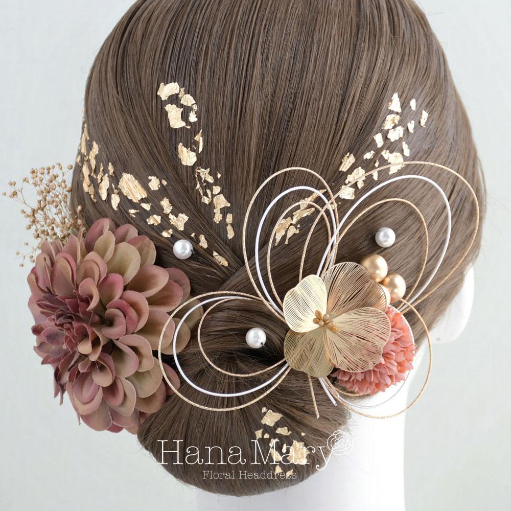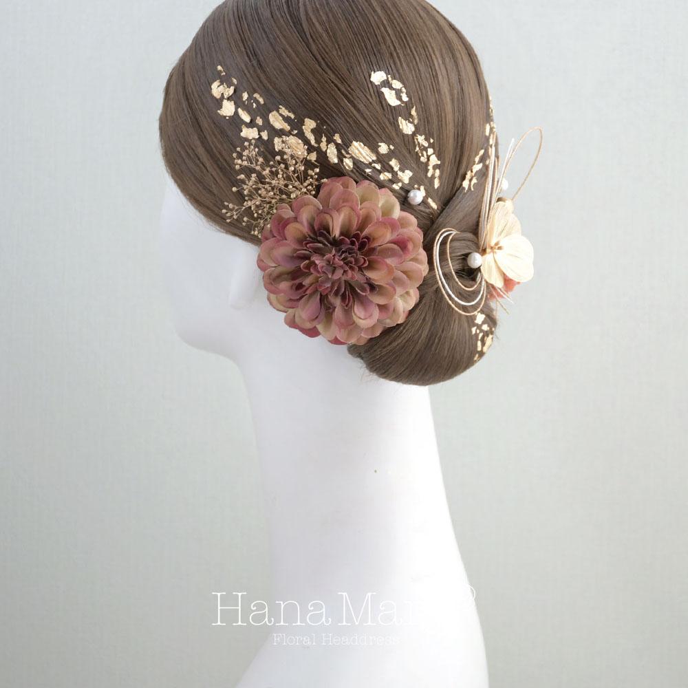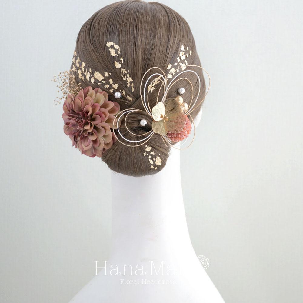 ジニアで彩る和モダン髪飾り【アンティーク】成人式 卒業式 結婚式 七五三 前撮り