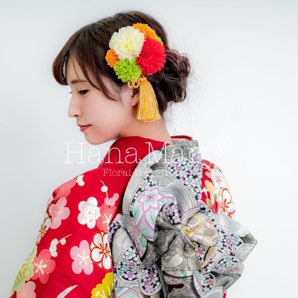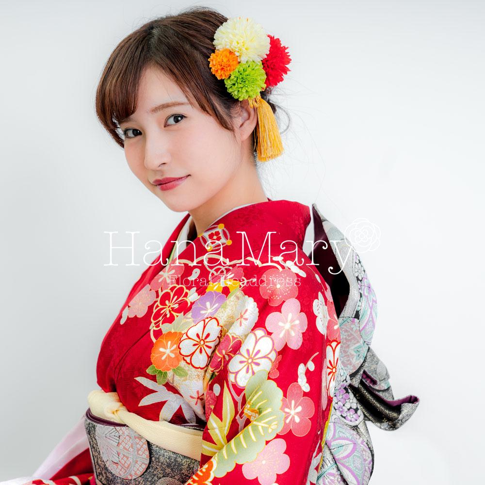 HanaMaryの髪飾りは生花をリアルに再現したアートフラワーと呼ばれるハイクオリティーな造花を使用しています。耐久性に優れ、成人式・卒業式やウェディングなどに何度でも繰り返し使用することができます。