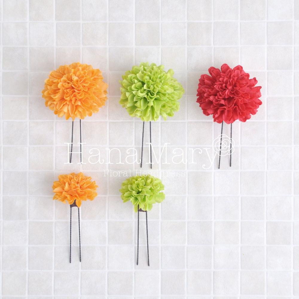 小ぶりめなSサイズのピンポンマムを3輪、SSサイズを2輪つかった定番コーデ☆