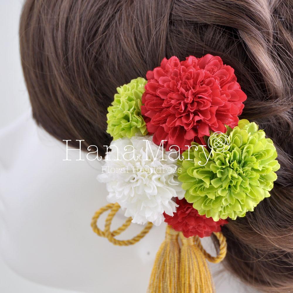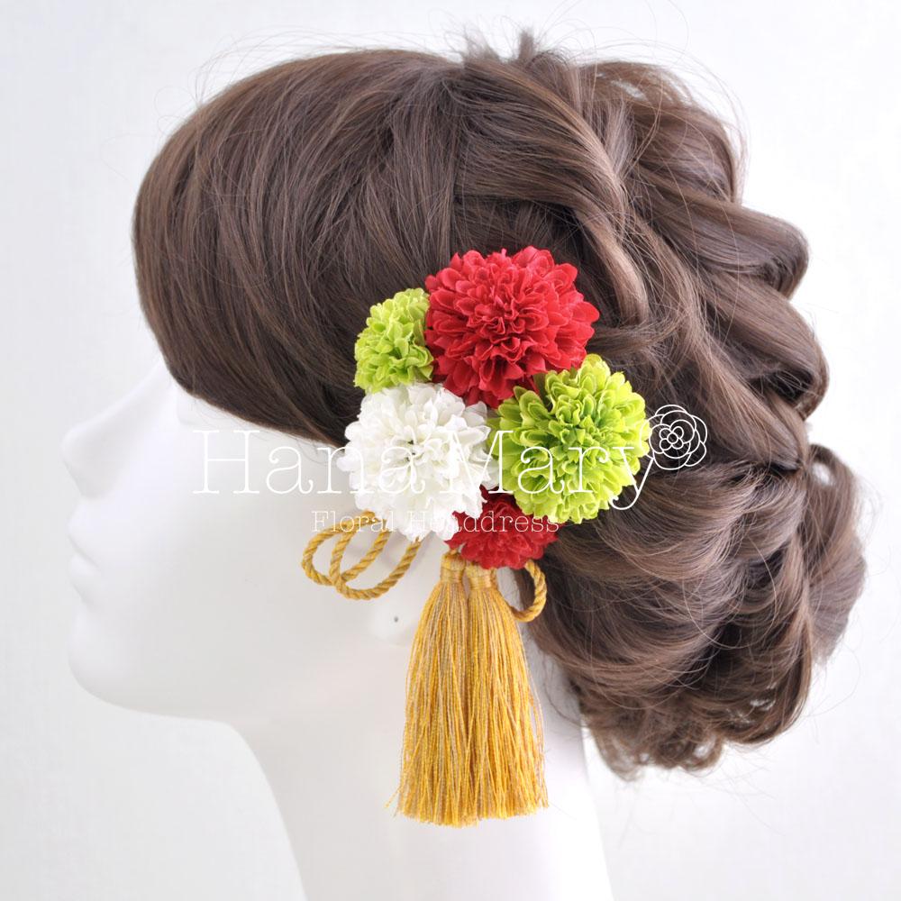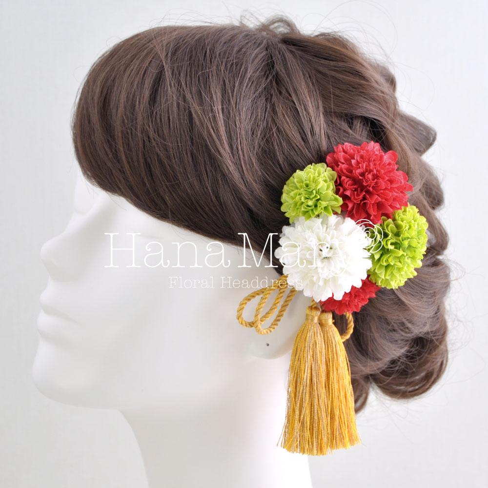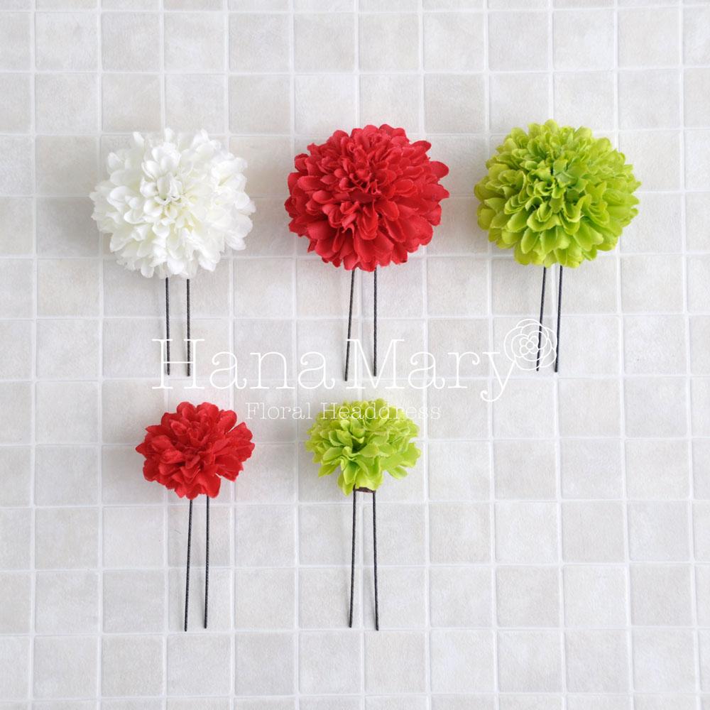 SとSSサイズのピンポンマムをバランス良く組み合わせたベーシックな髪飾り。