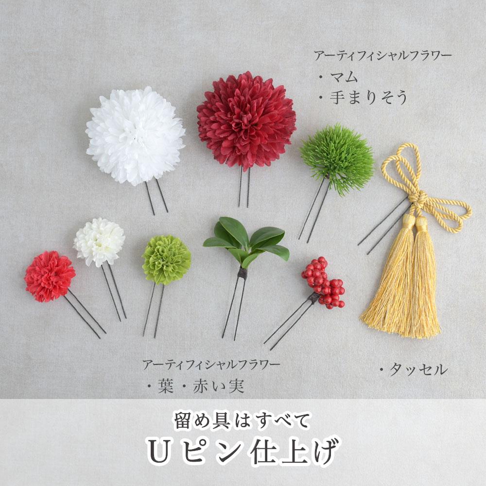 ◉お花やパーツは全てUピンに、それぞれ独立して取り付けてあります。