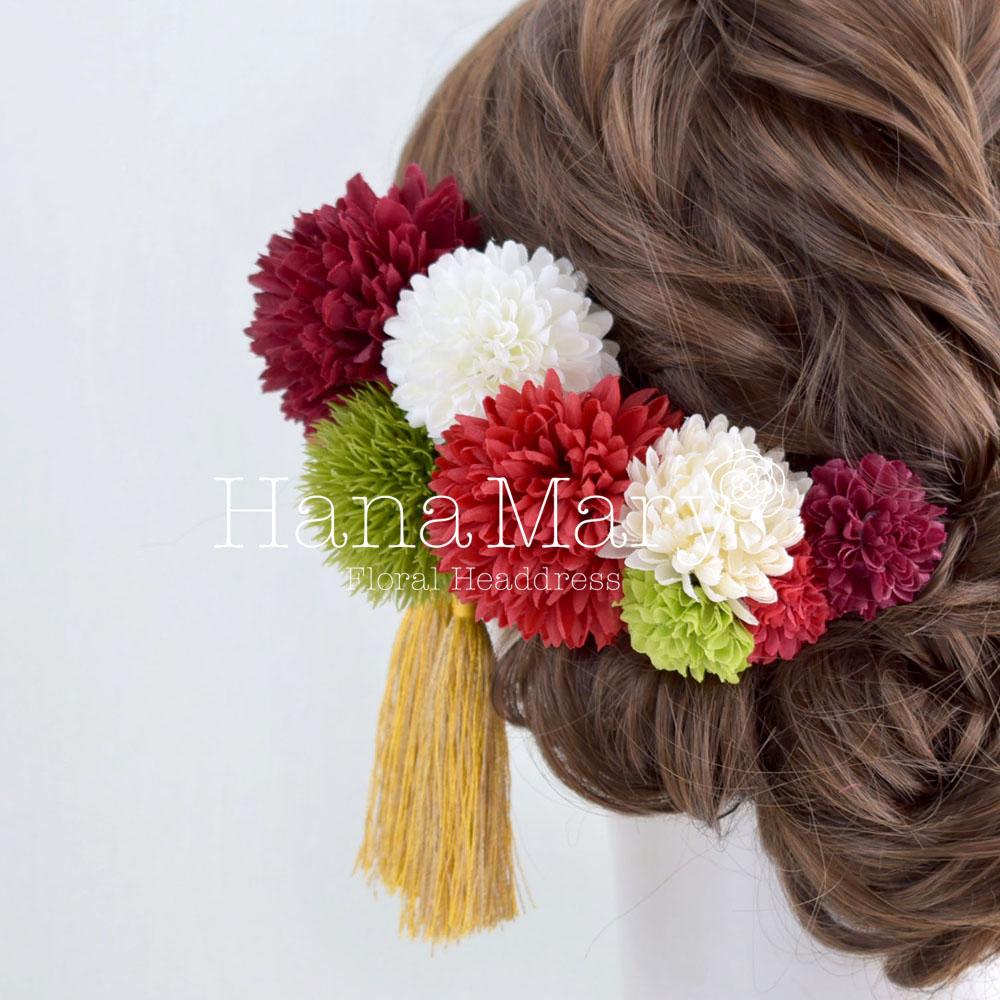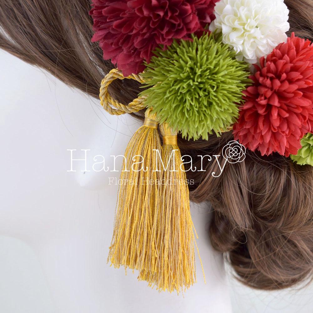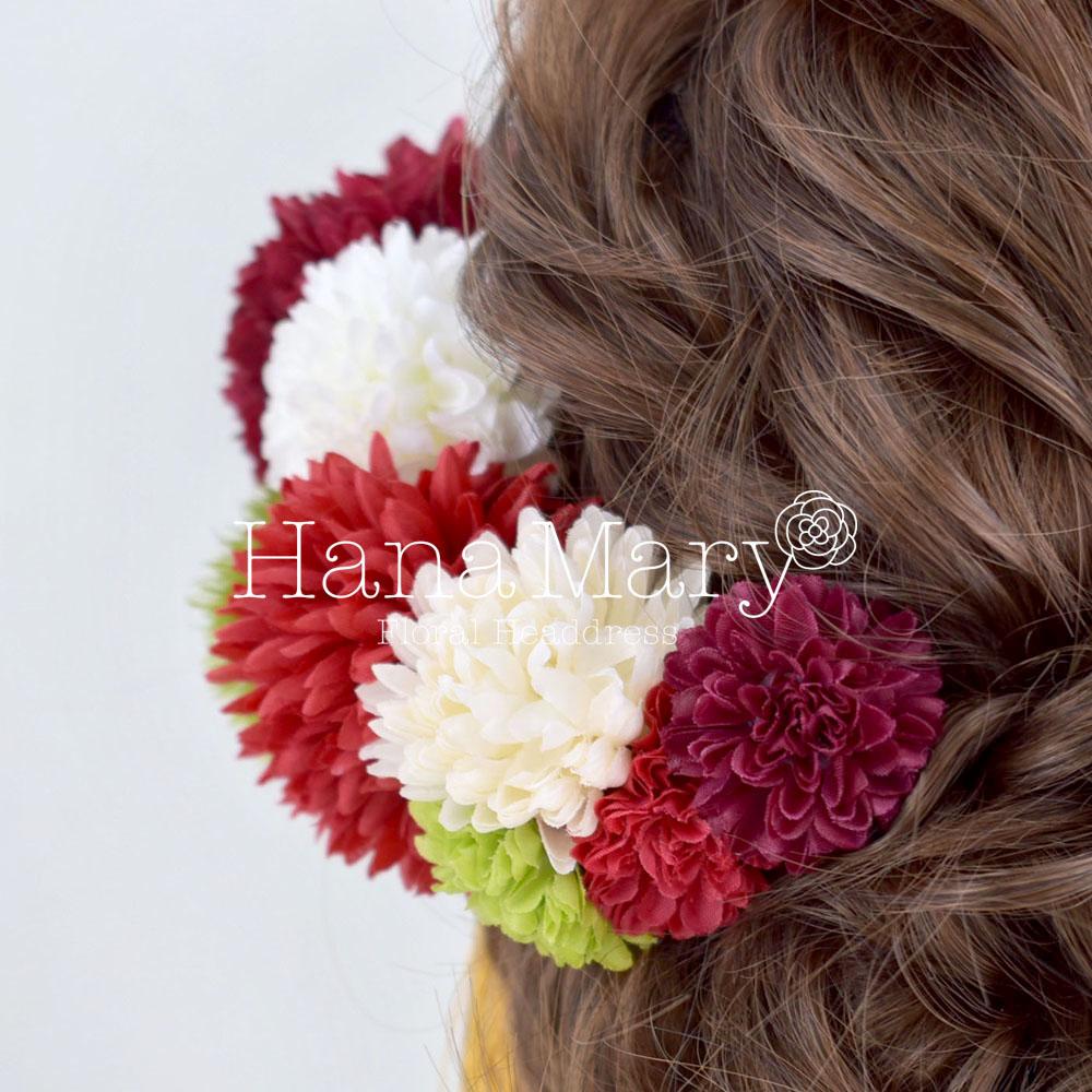 HanaMaryの髪飾りは生花をリアルに再現したアートフラワーと呼ばれるハイクオリティーな造花を使用しています。耐久性に優れ、成人式・卒業式やウェディングなどに何度でも繰り返し使用することができます。
