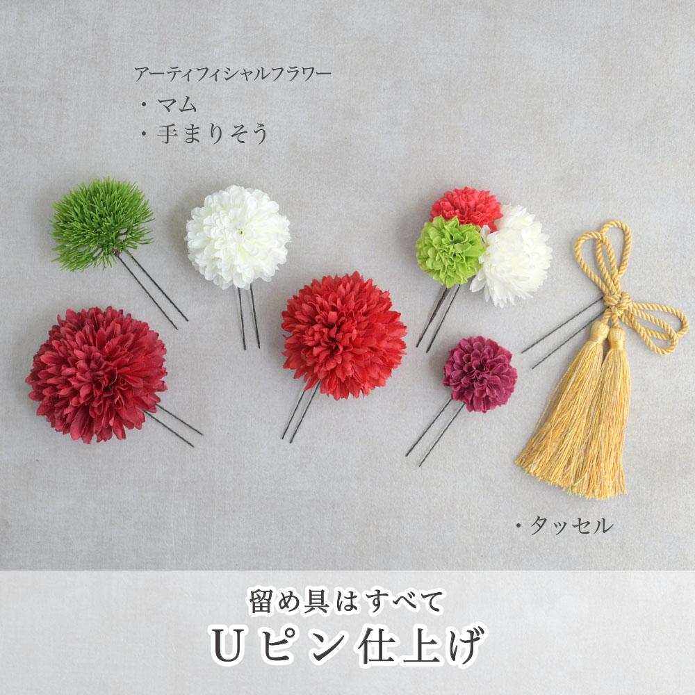 その日のヘアスタイルによって自由に一輪一輪配置できます。お花の数が多い場合でも、アメピンを追加して簡単にしっかりと固定できます。