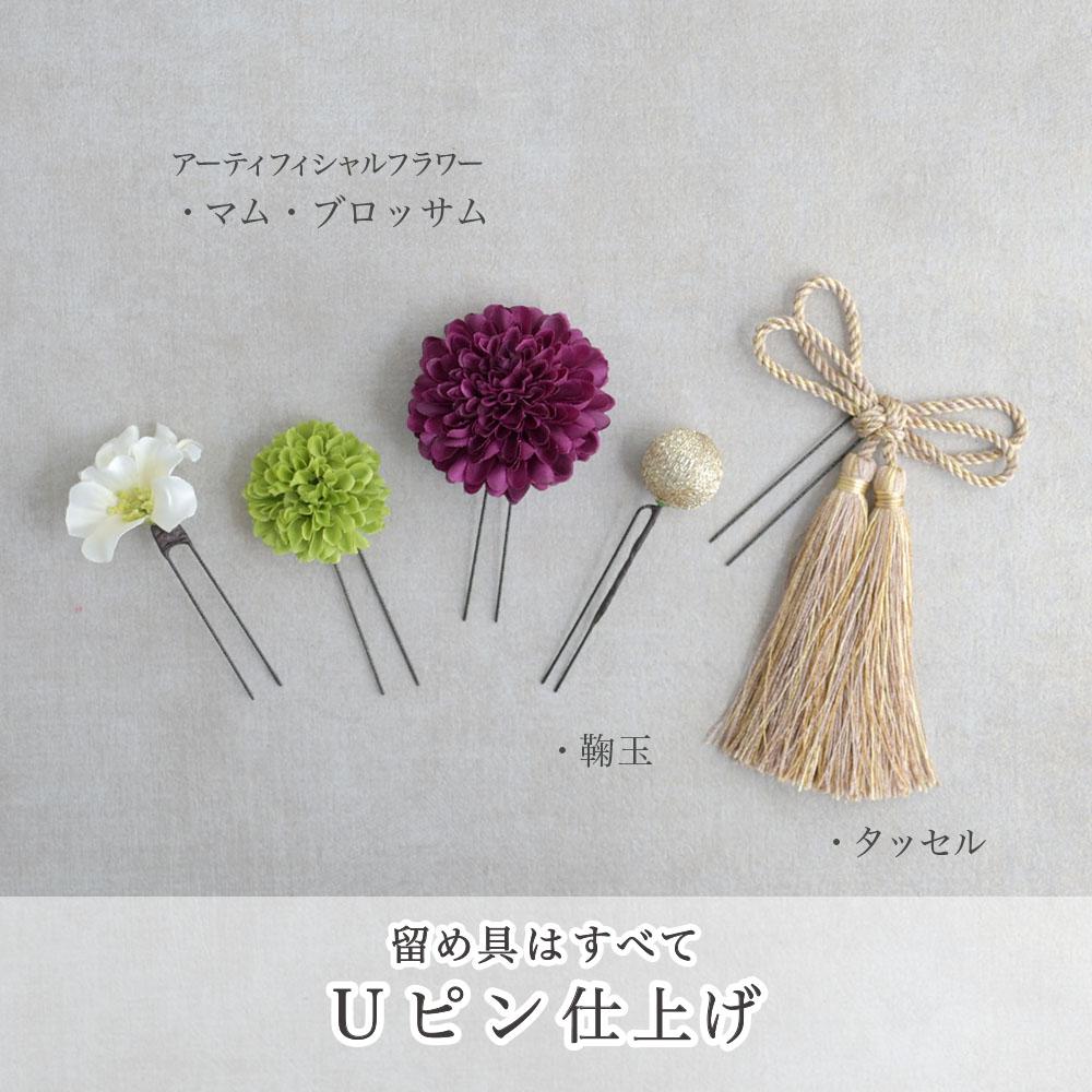 伝統的な和の雅色なので様々な柄の振袖や卒業式袴などにマッチし、式典シーンに大変活躍してくれる髪飾りです。