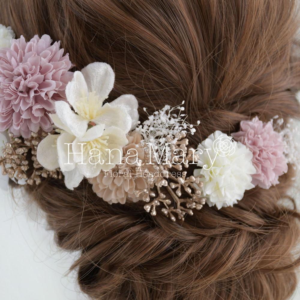 もっと見る◉ 厳選したアーティフィシャルフラワーを使用したお花の髪飾りです。
