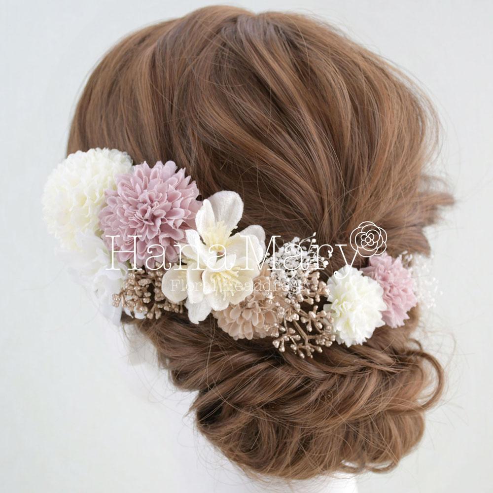 その日のヘアスタイルによって自由に一輪一輪配置できます。お花の数が多い場合でも、アメピンを追加して簡単にしっかりと固定できます。