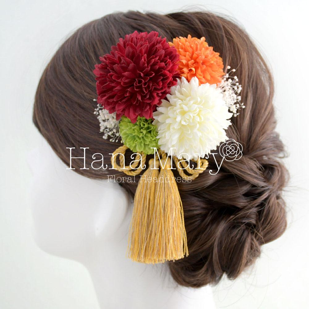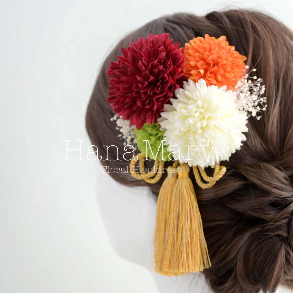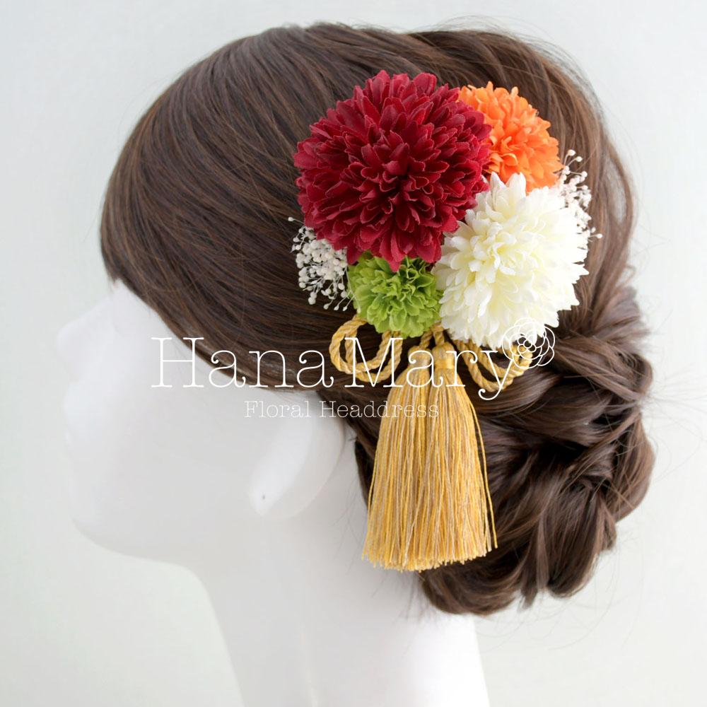 和彩色マムとかすみ草 成人式 結婚式 卒業式 髪飾り