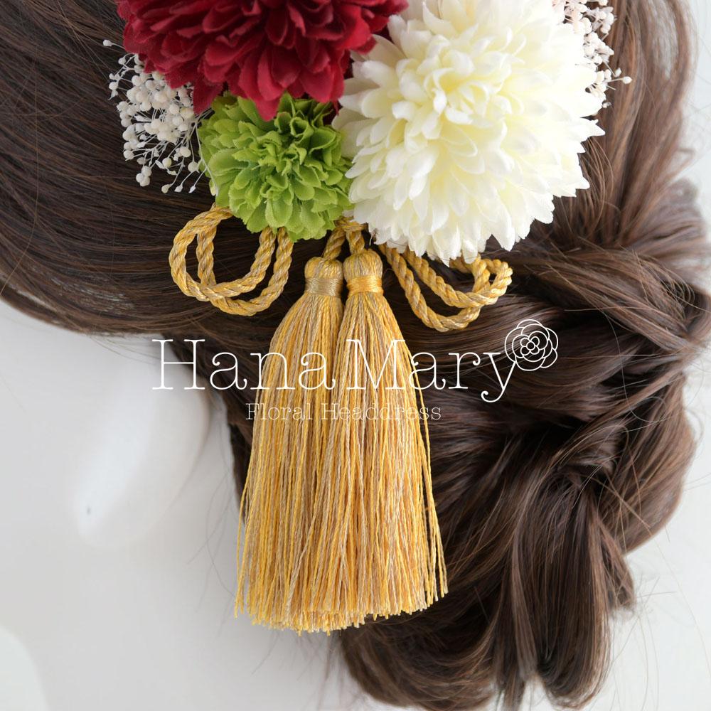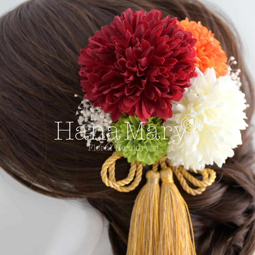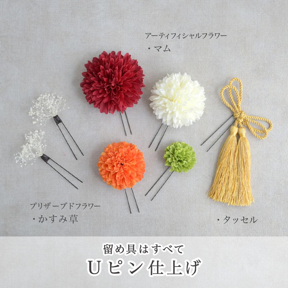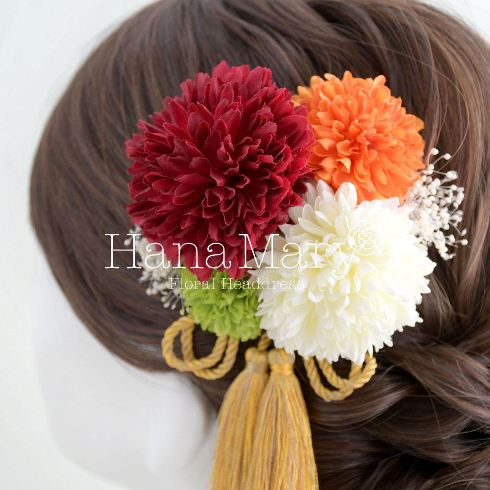 和彩色マムとかすみ草 成人式 結婚式 卒業式 髪飾り