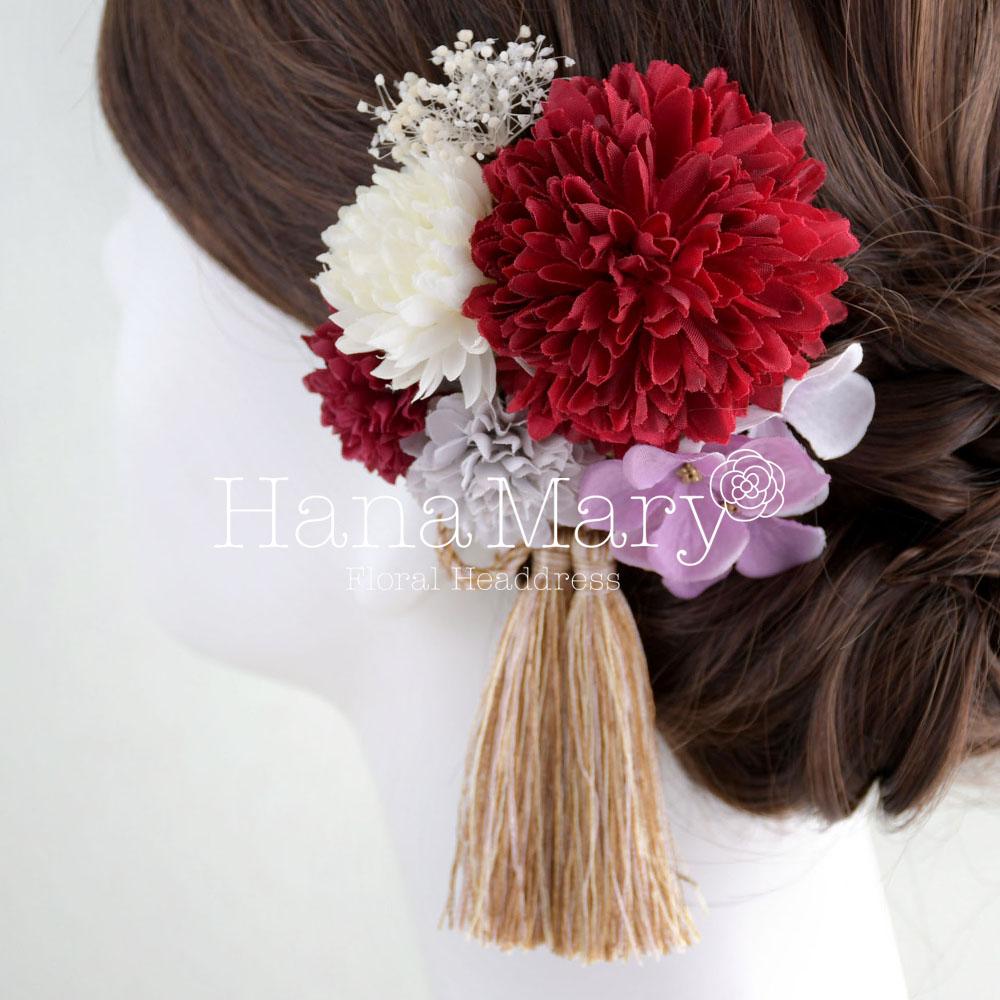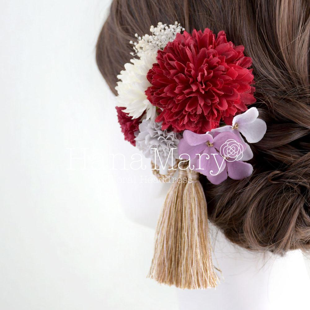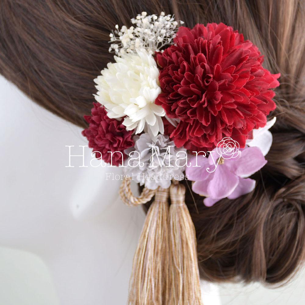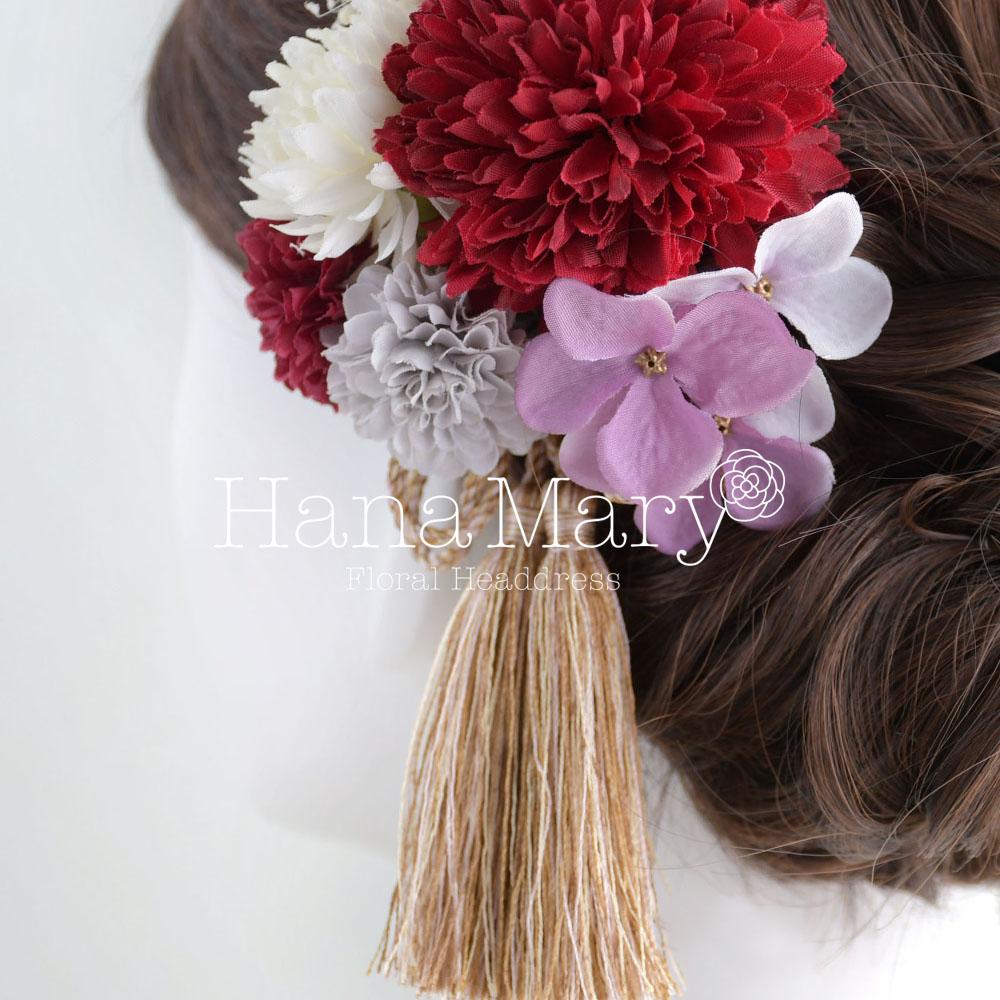 マムと紫陽花の髪飾り モダン 成人式 結婚式 卒業式 和装髪飾り