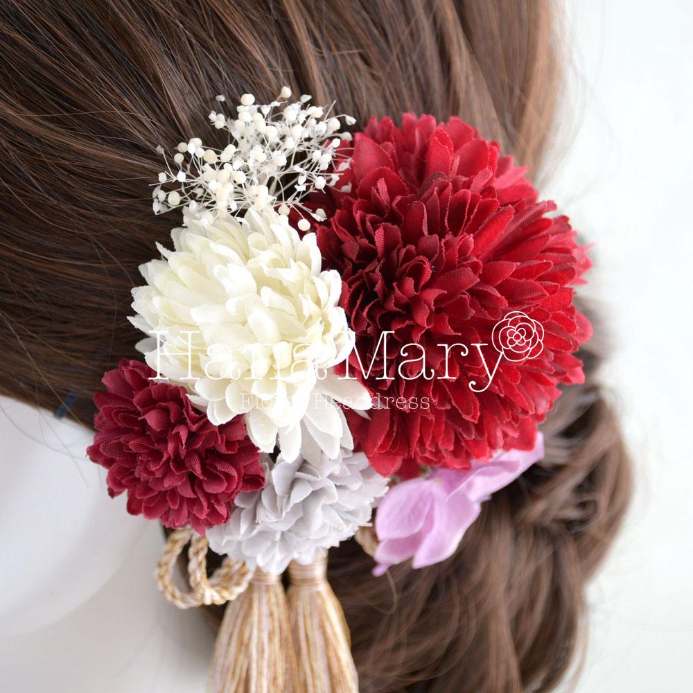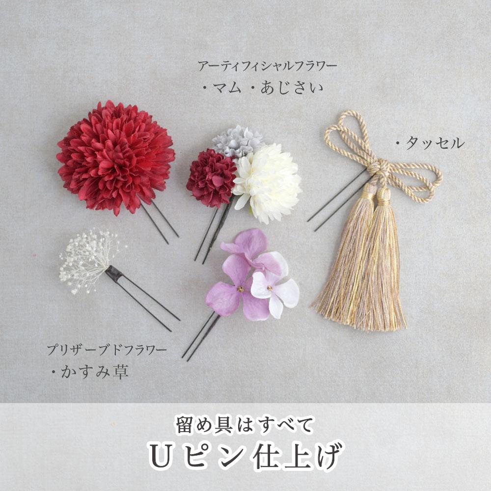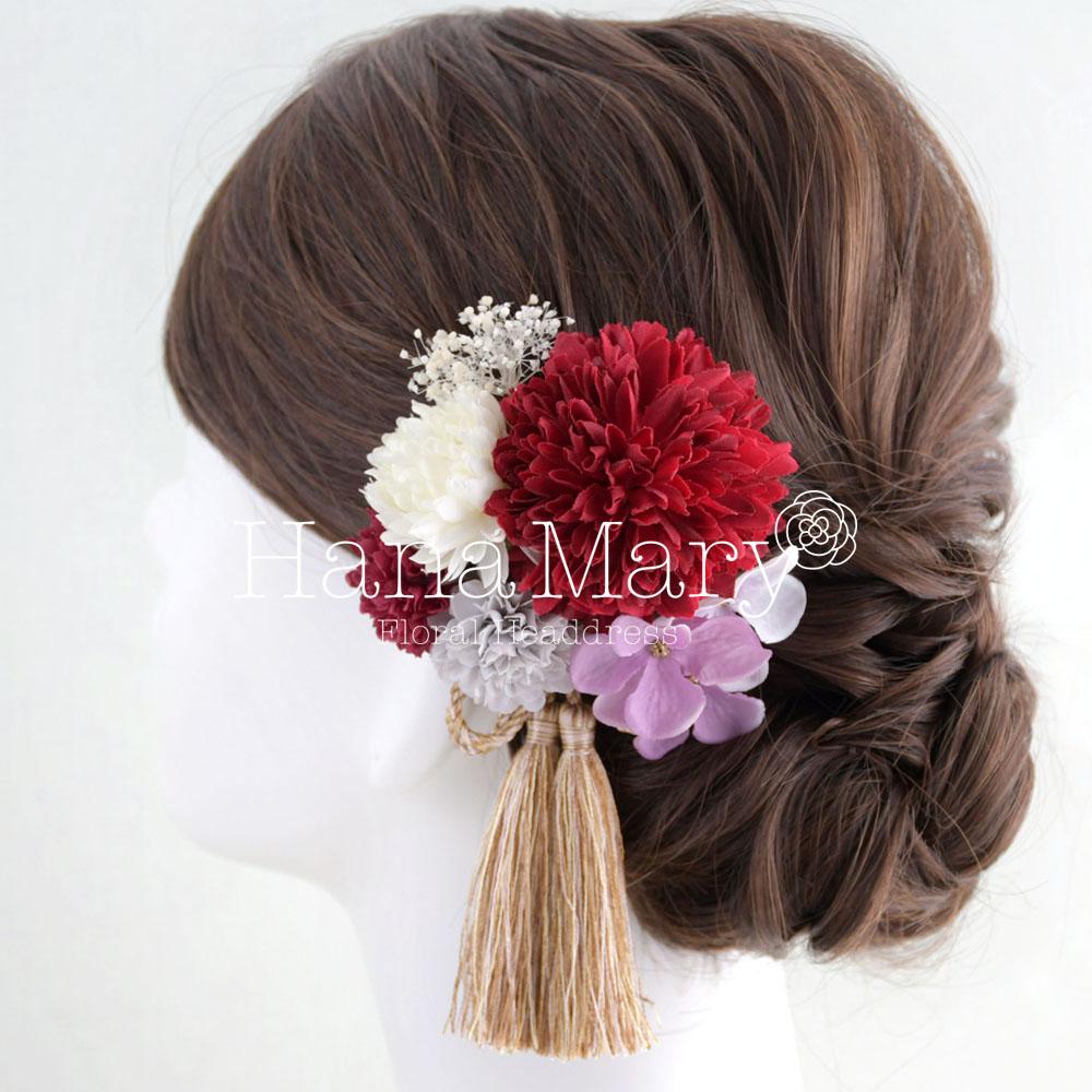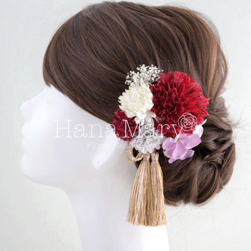 マムと紫陽花の髪飾り モダン 成人式 結婚式 卒業式 和装髪飾り