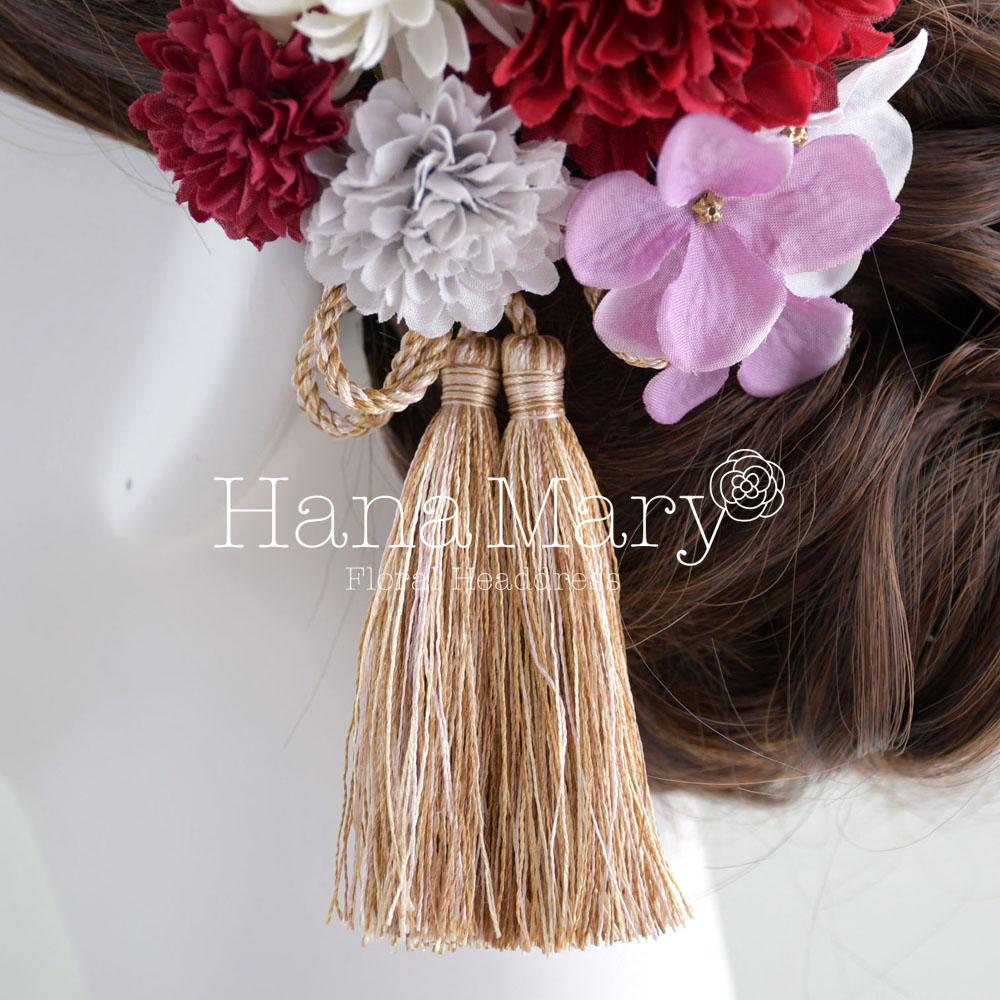 HanaMaryの髪飾りは生花をリアルに再現したアートフラワーと呼ばれるハイクオリティーな造花を使用しています。耐久性に優れ、成人式・卒業式やウェディングなどに何度でも繰り返し使用することができます。