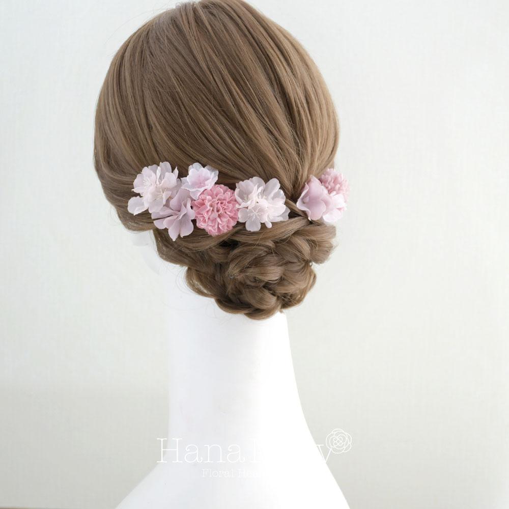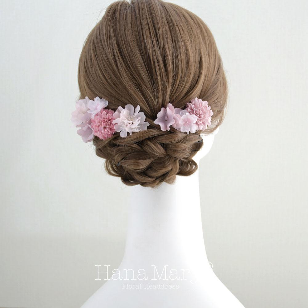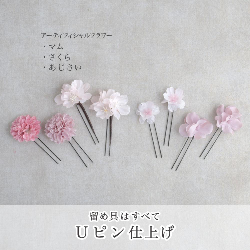 その日のヘアスタイルによって自由に一輪一輪配置できます。お花の数が多い場合でも、アメピンを追加して簡単にしっかりと固定できます。