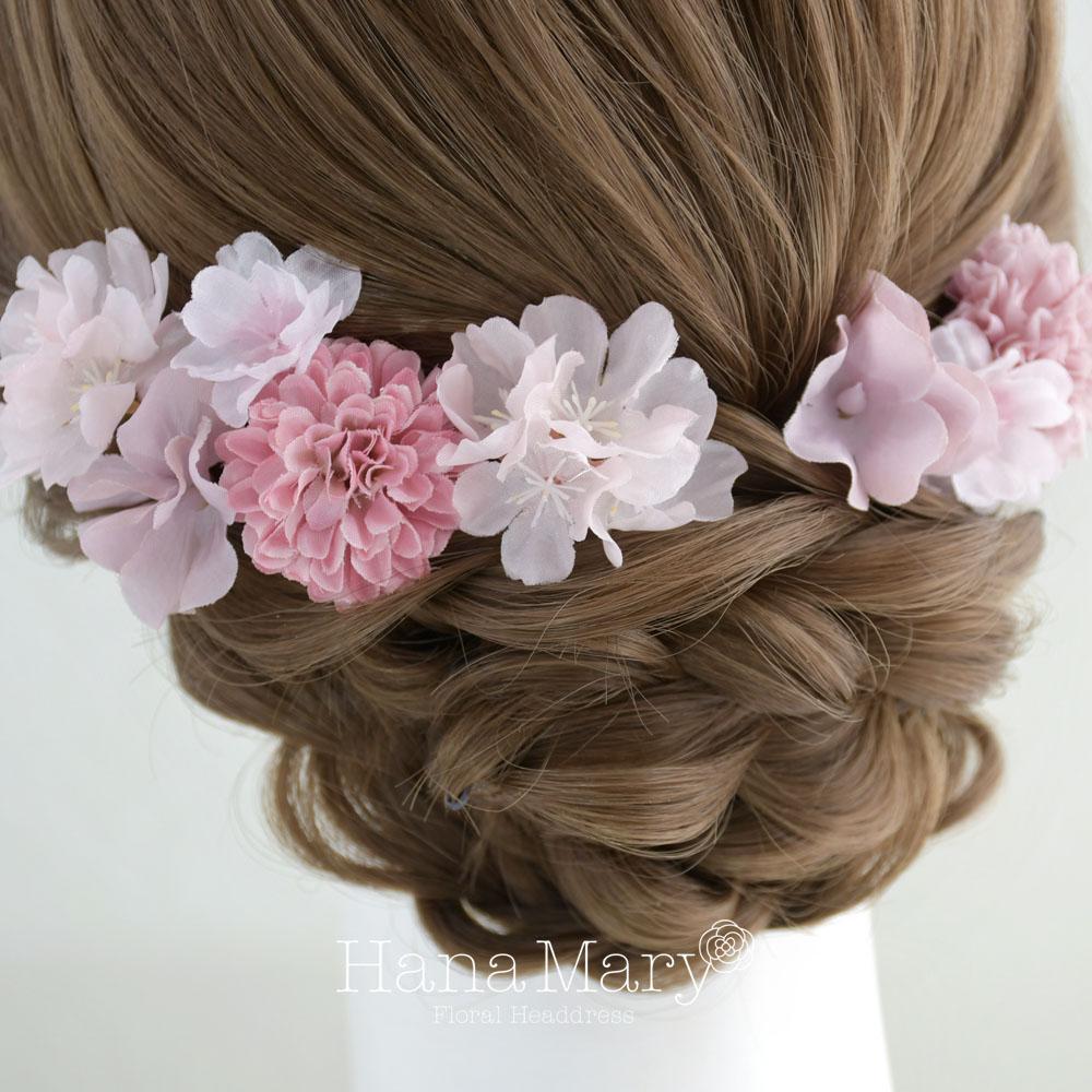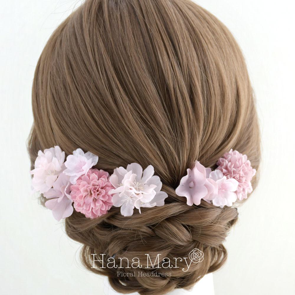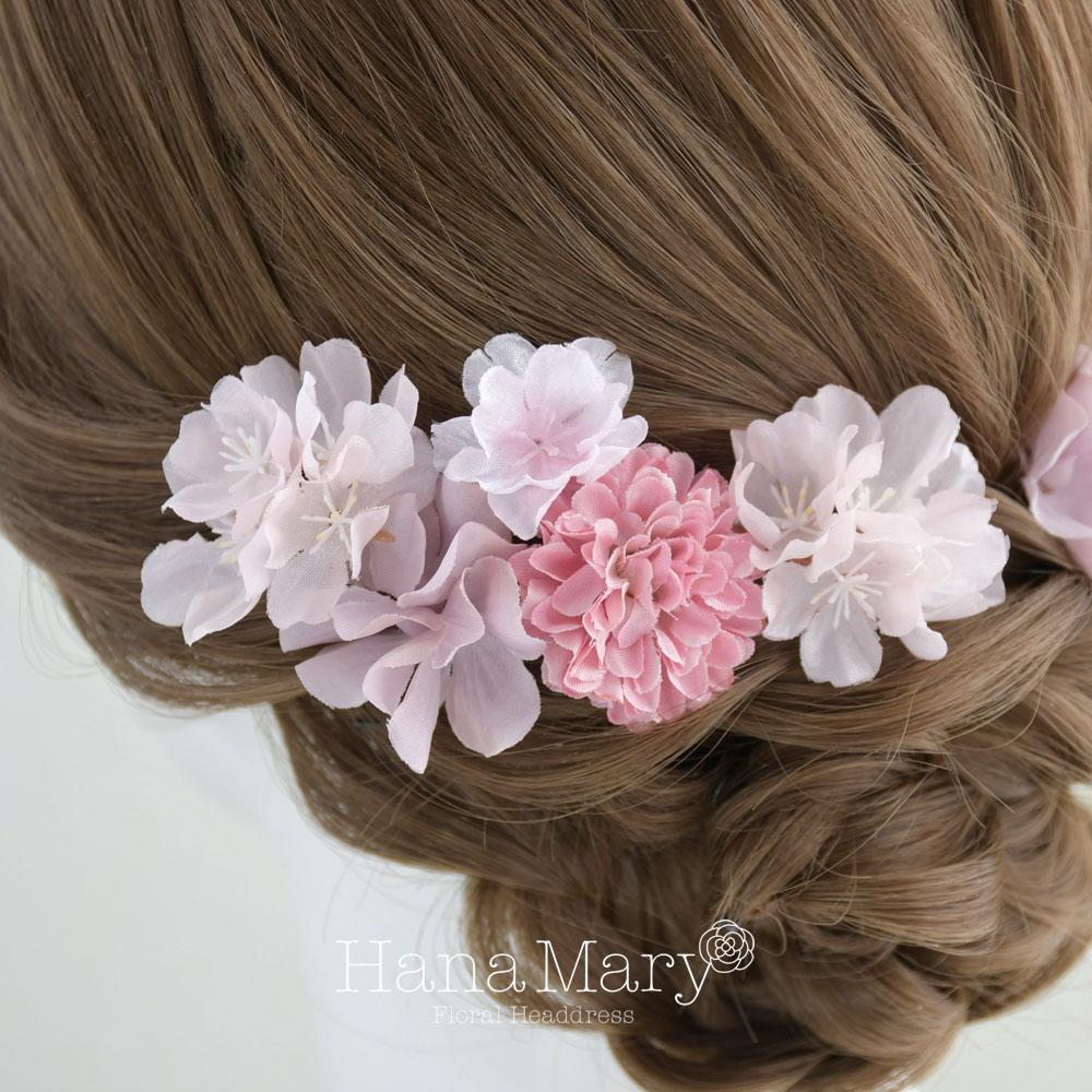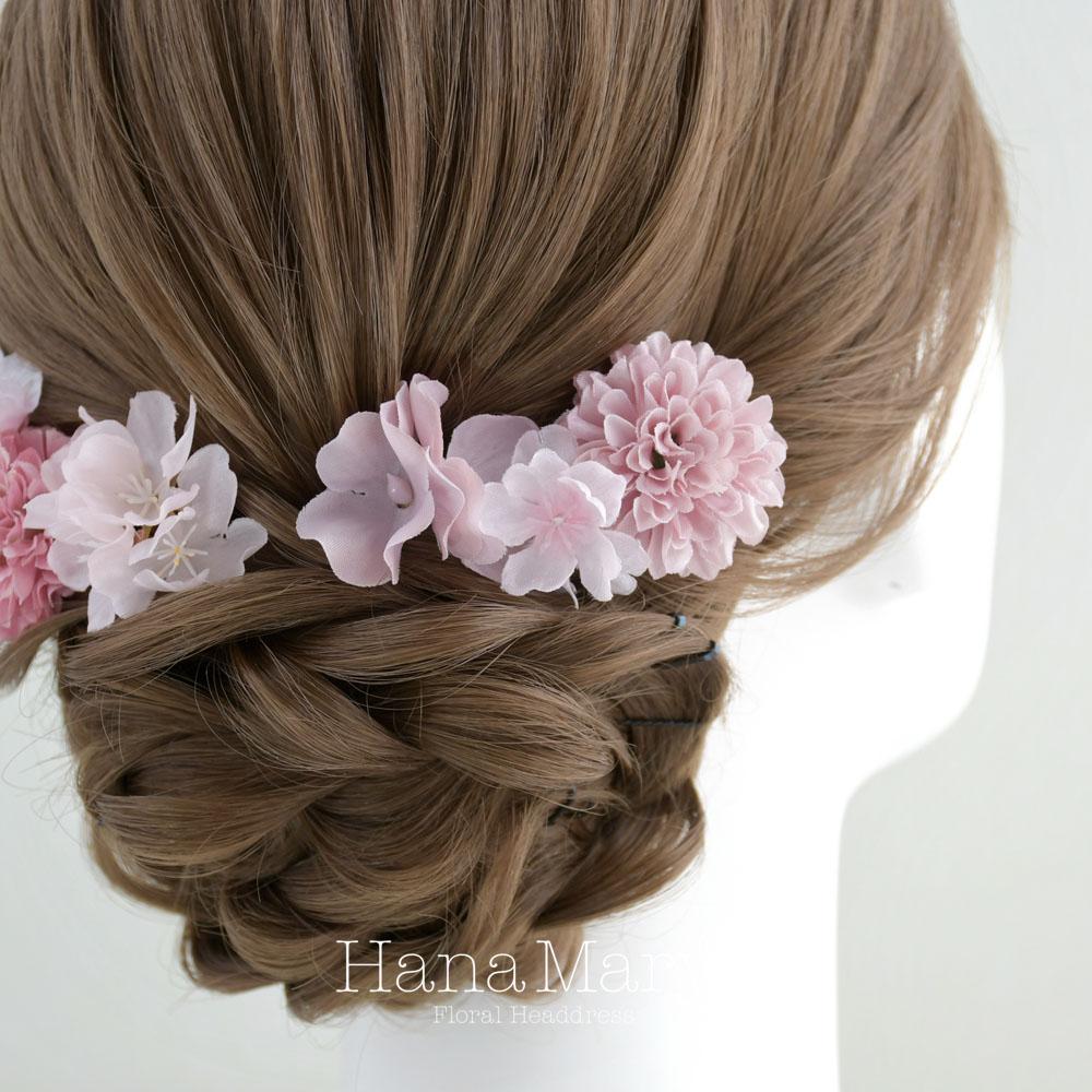 その日のヘアスタイルによって自由に一輪一輪配置できます。お花の数が多い場合でも、アメピンを追加して簡単にしっかりと固定できます。