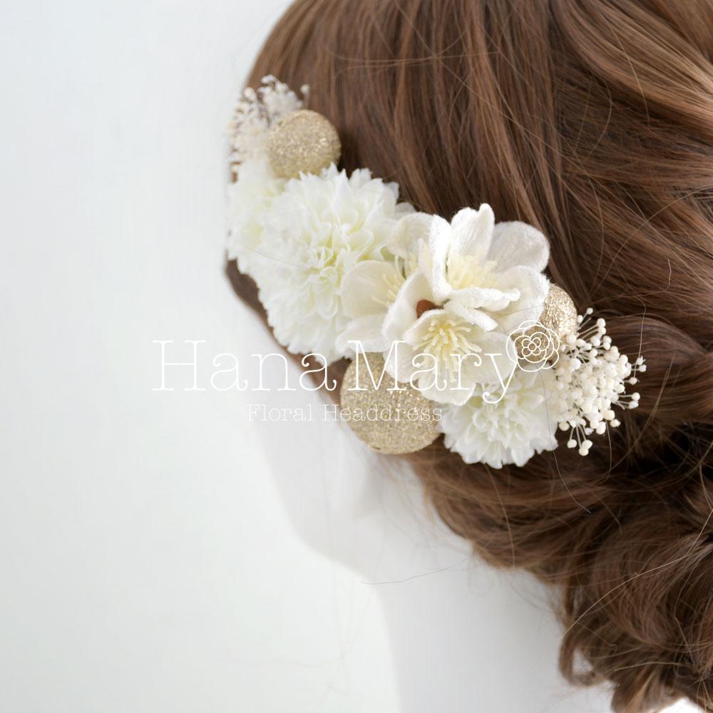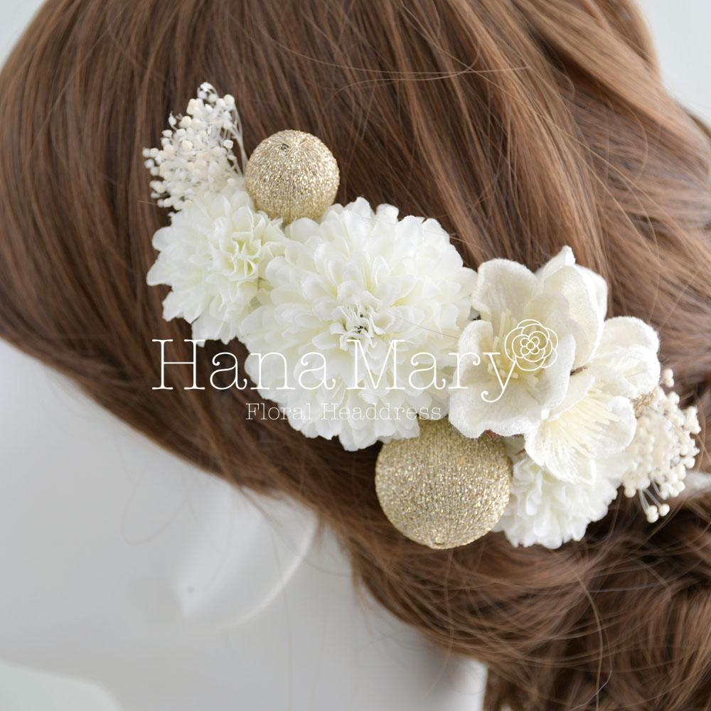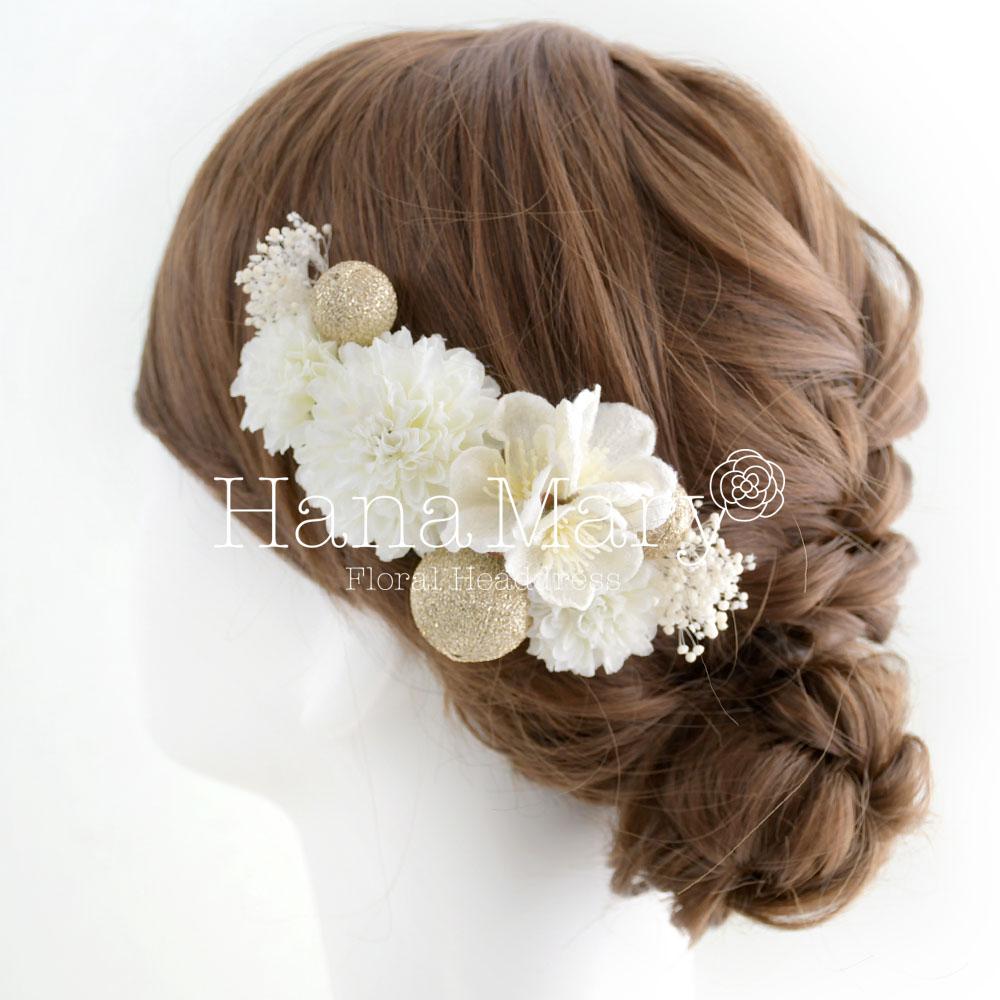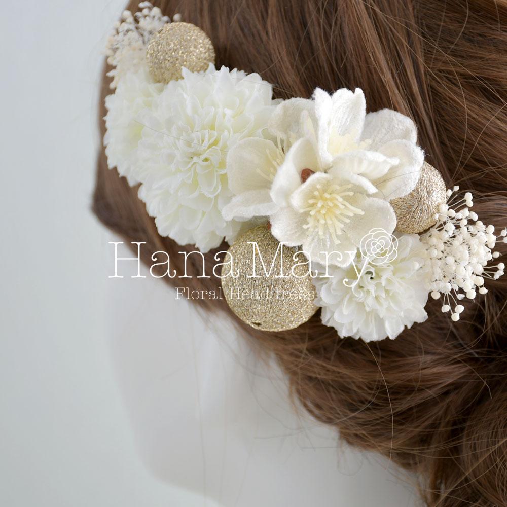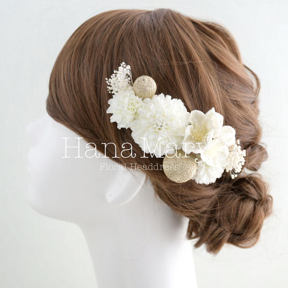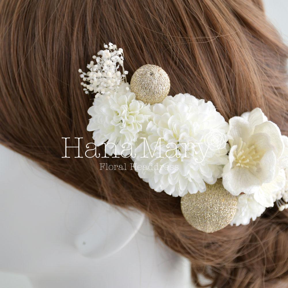 白 ゴールドで清楚に 成人式 卒業式 振袖 袴 髪飾り 着物
