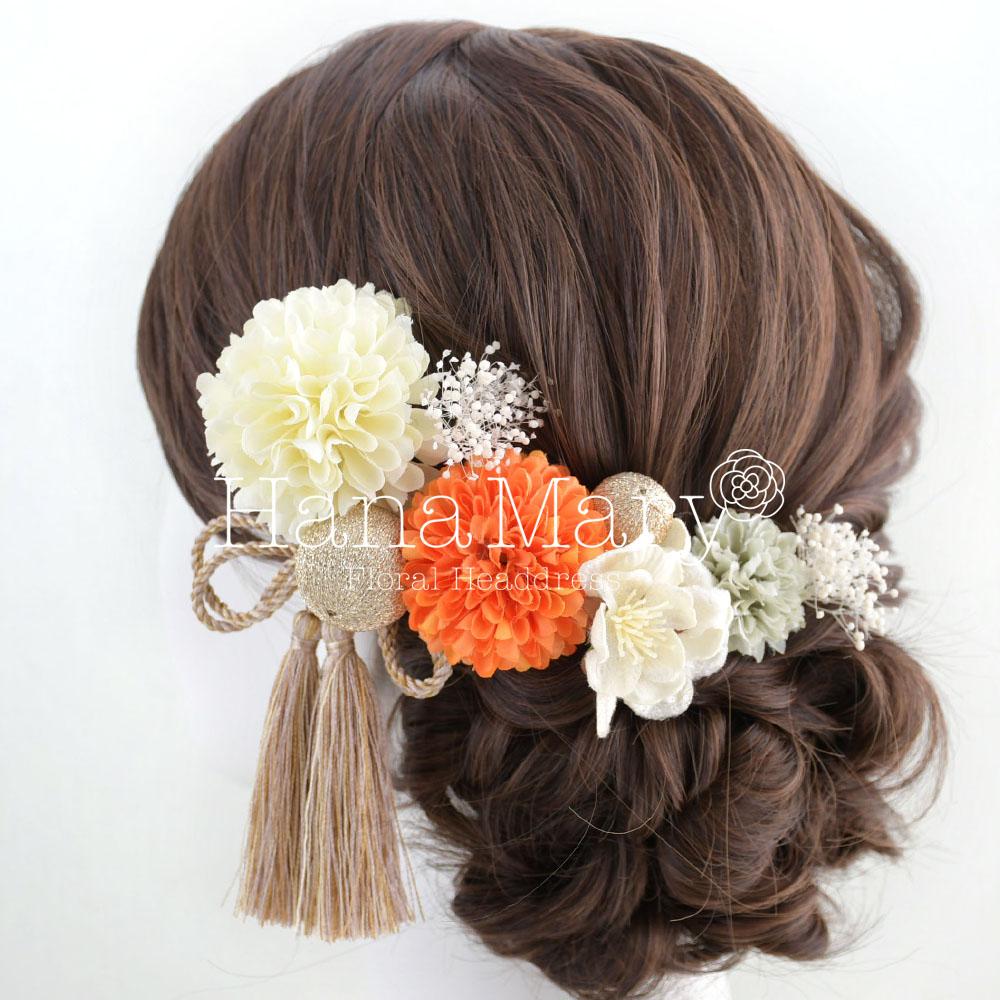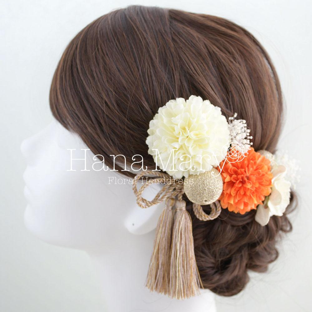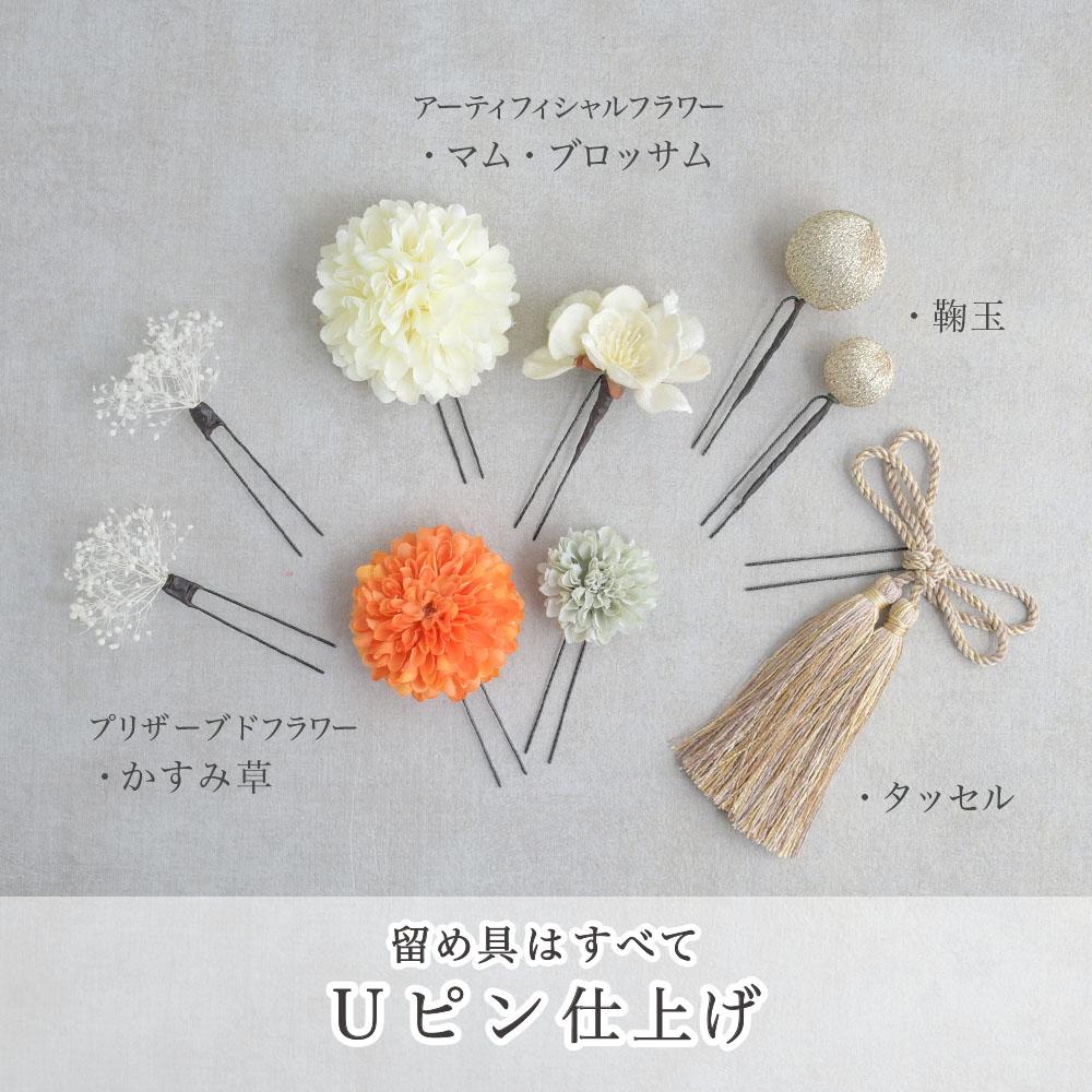 花びらのヒラヒラした感じがとても可愛らしいクリーム色のフリルマムをメインに、清楚でありながらもファッショナブルなデザインで和装のスタイルをより和モダンなテイストへと導いてくれます。