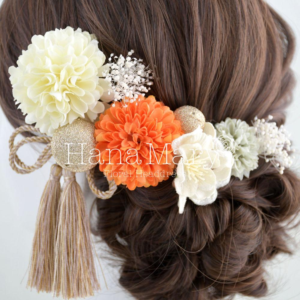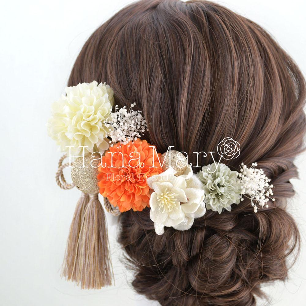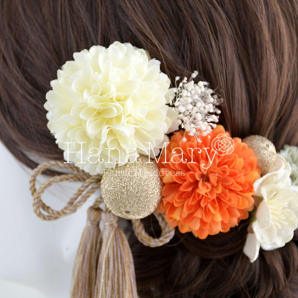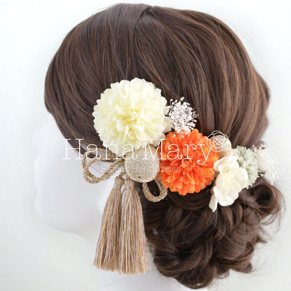 花びらのヒラヒラした感じがとても可愛らしいクリーム色のフリルマムをメインに、清楚でありながらもファッショナブルなデザインで和装のスタイルをより和モダンなテイストへと導いてくれます。