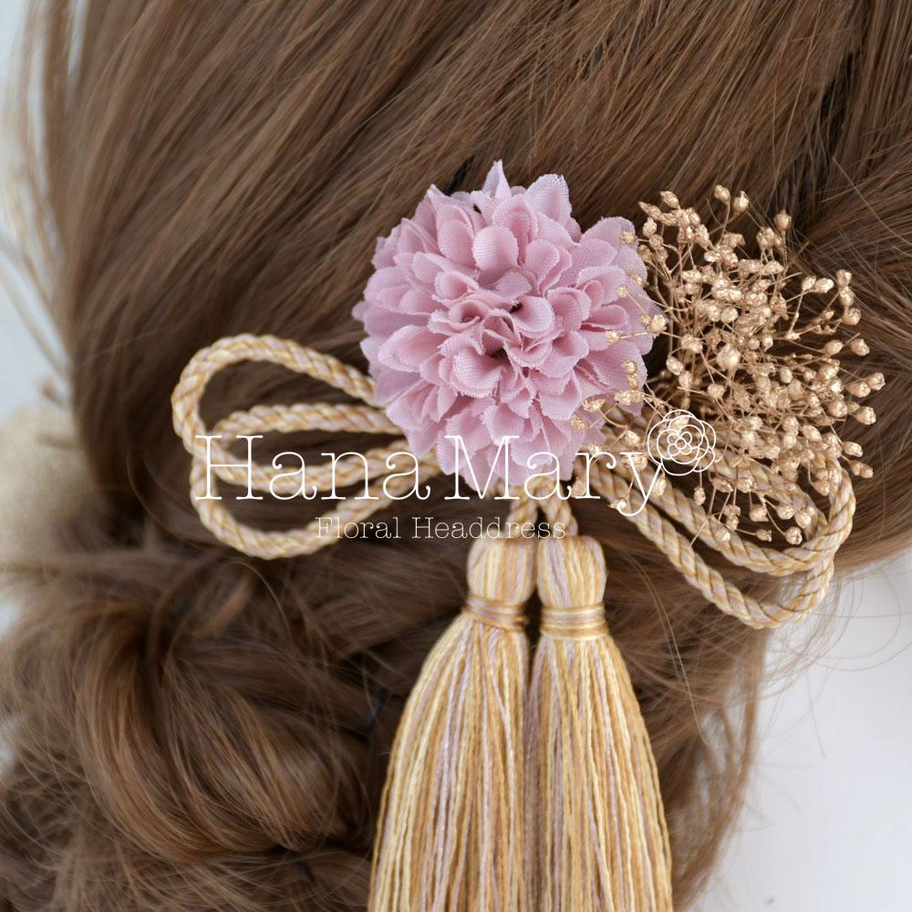 HanaMaryの髪飾りは生花をリアルに再現したアートフラワーと呼ばれるハイクオリティーな造花を使用しています。耐久性に優れ、成人式・卒業式やウェディングなどに何度でも繰り返し使用することができます。