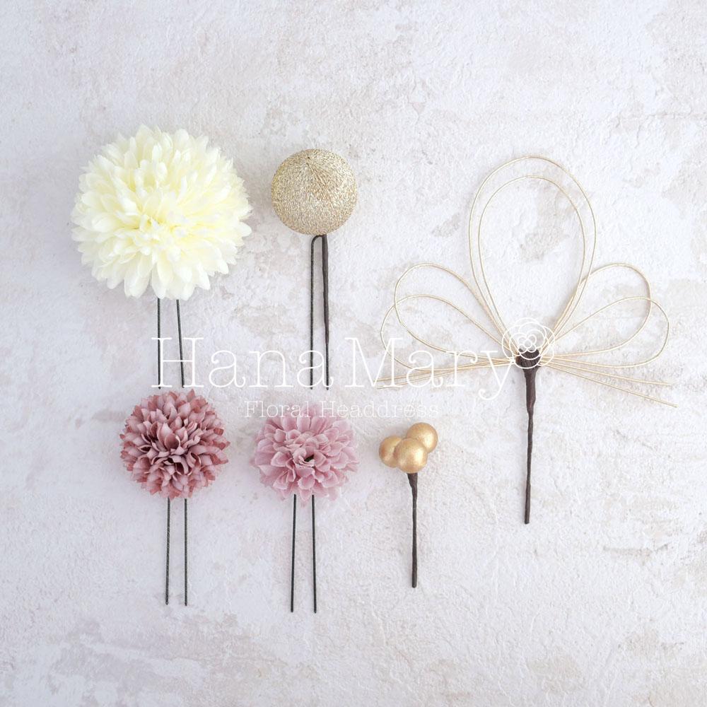 その日のヘアスタイルによって自由に一輪一輪配置できます。お花の数が多い場合でも、アメピンを追加して簡単にしっかりと固定できます。