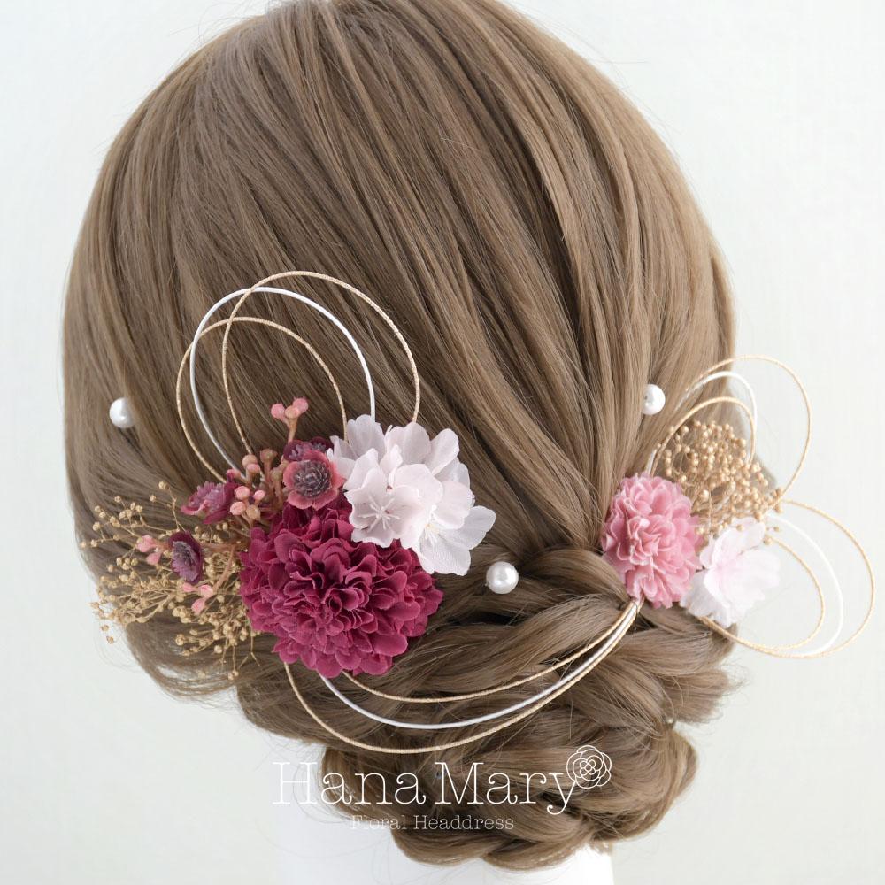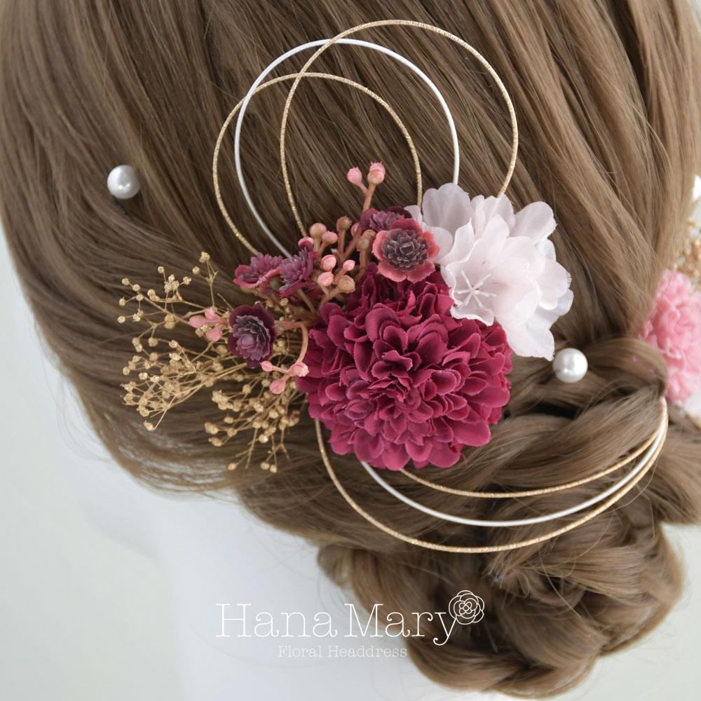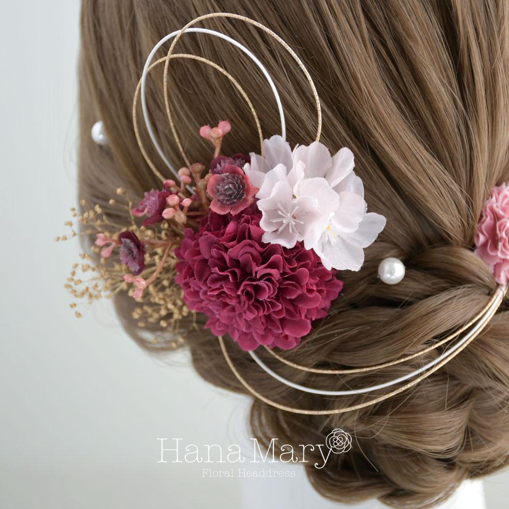 さくらとマムの髪飾り 卒業式 成人式 七五三 振袖 袴【ボルドー】パールピン