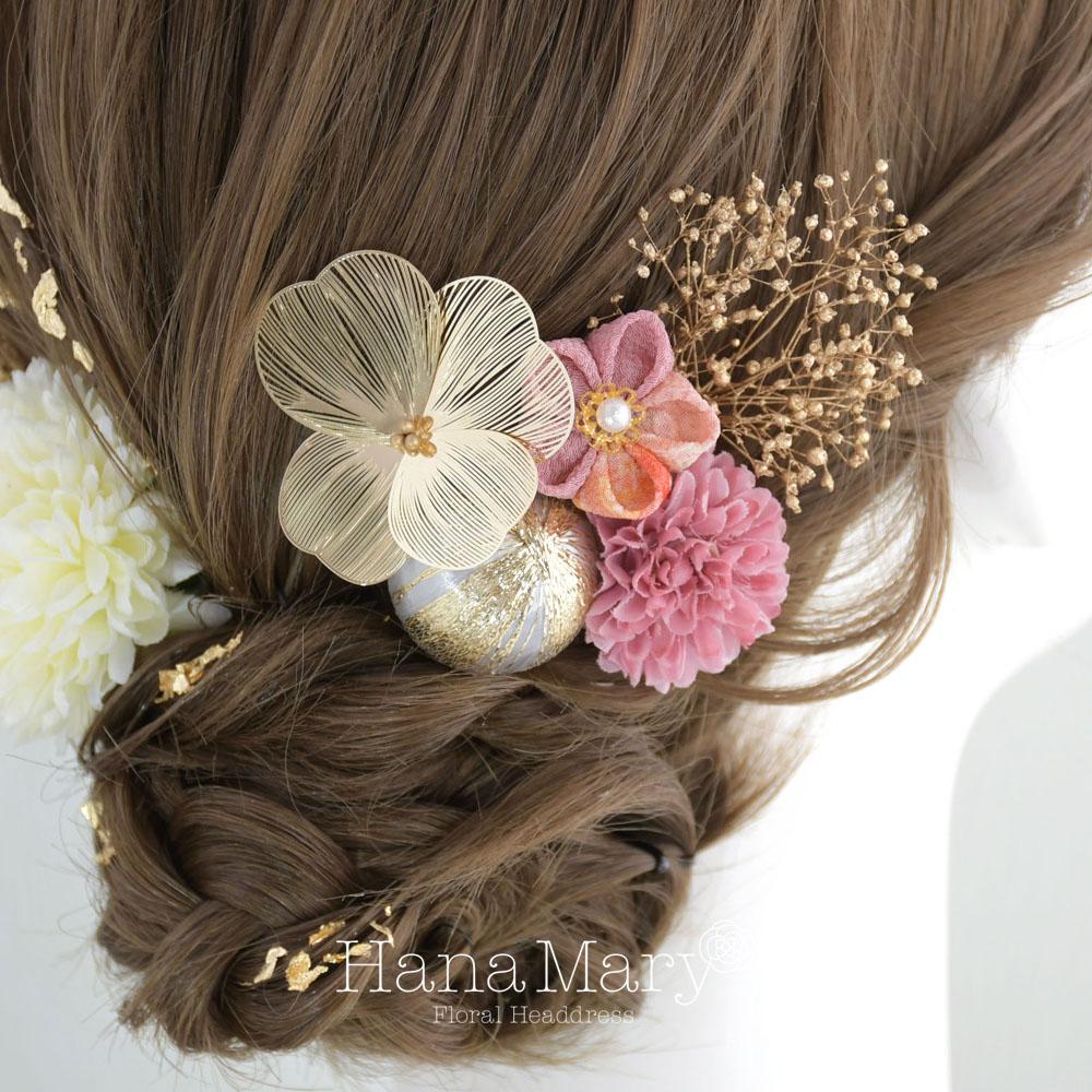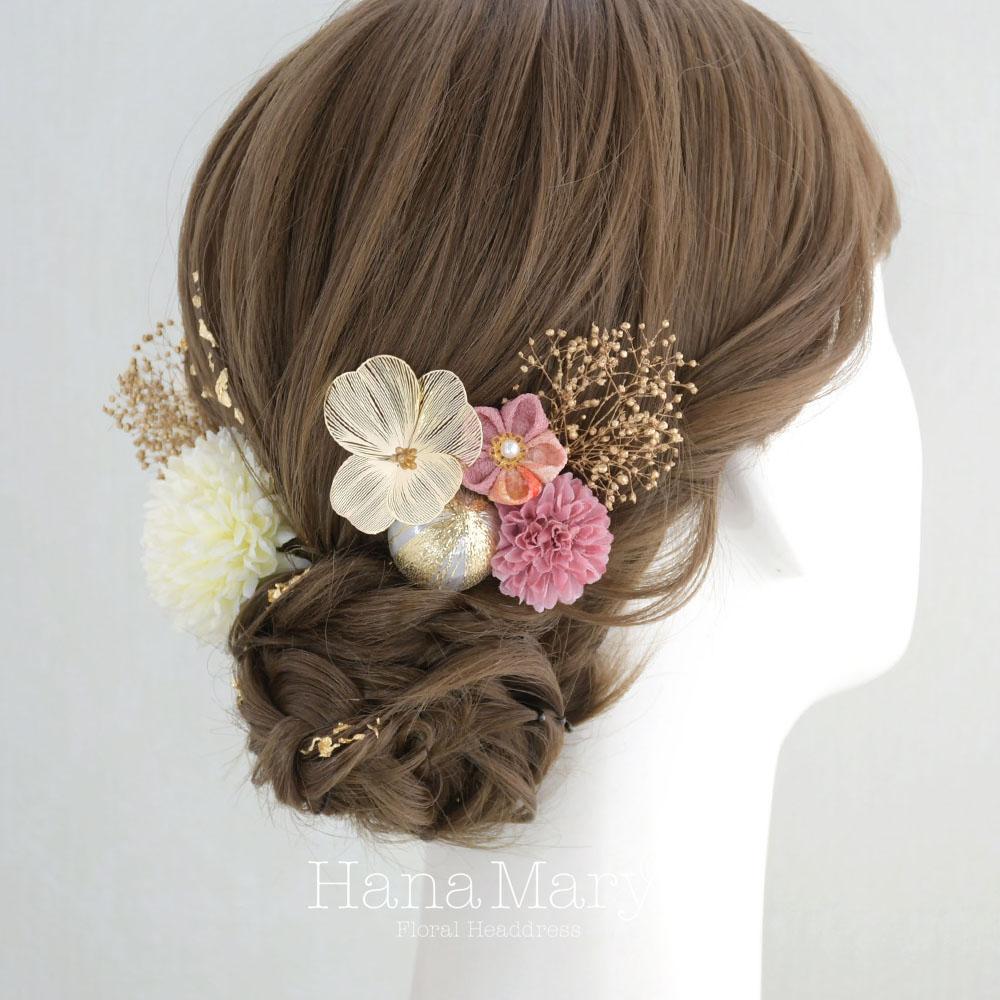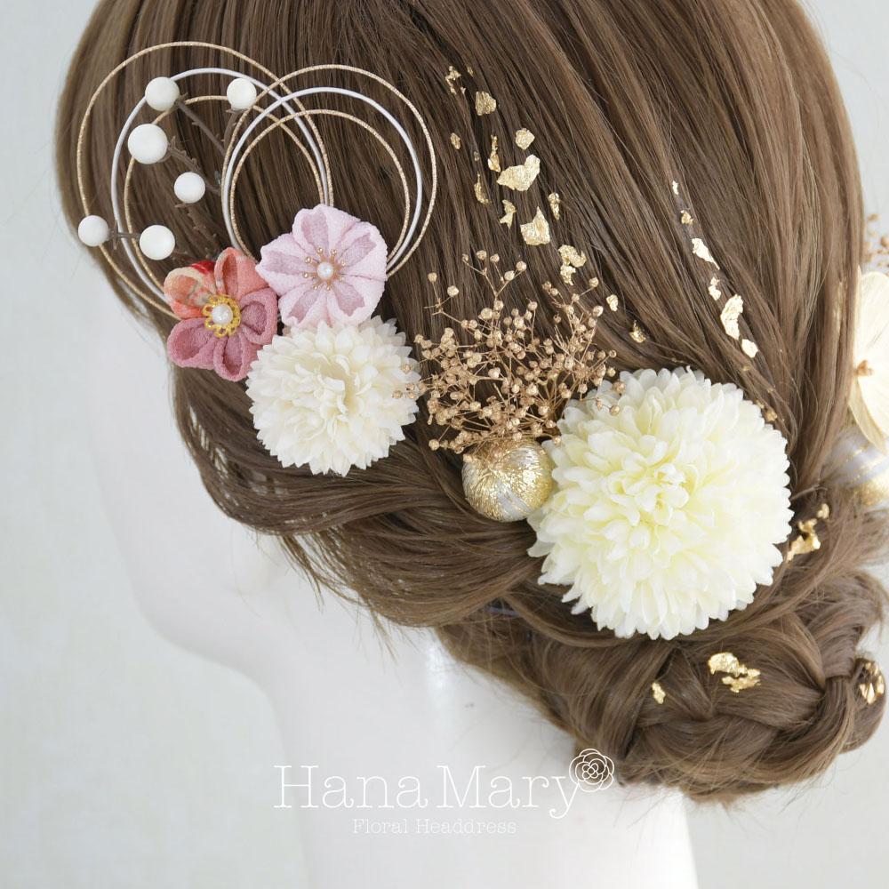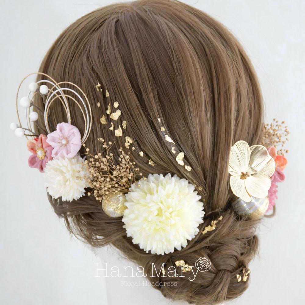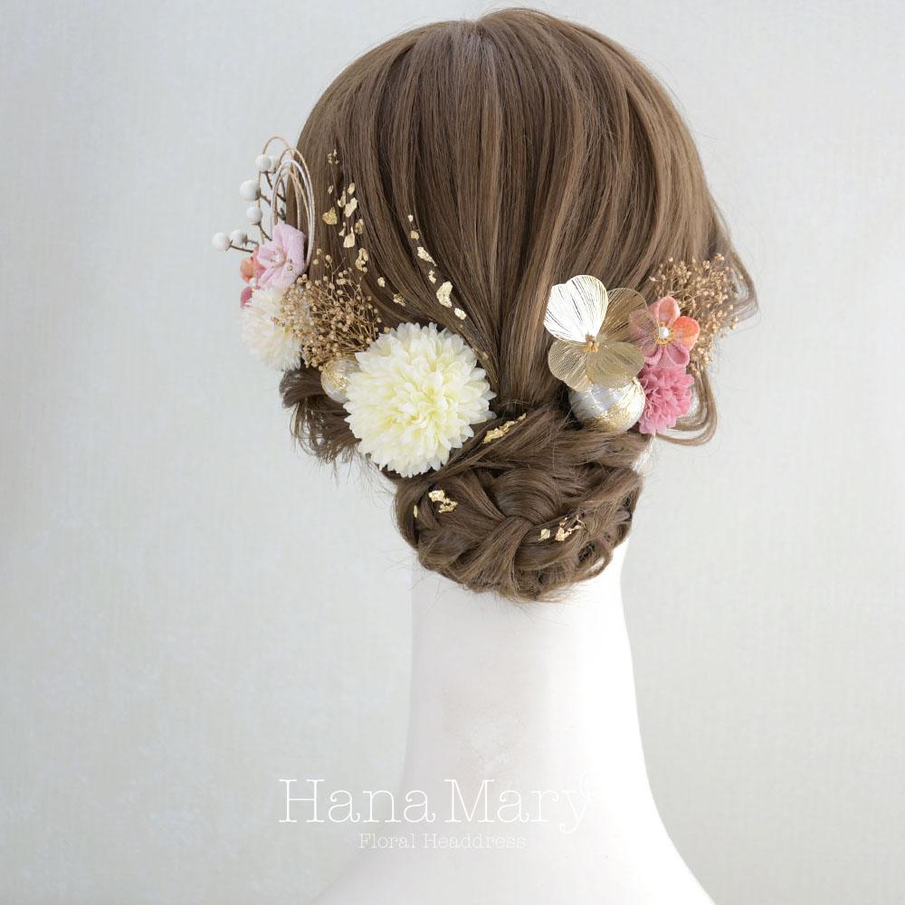HanaMaryの髪飾りは生花をリアルに再現したアートフラワーと呼ばれるハイクオリティーな造花を使用しています。耐久性に優れ、成人式・卒業式やウェディングなどに何度でも繰り返し使用することができます。