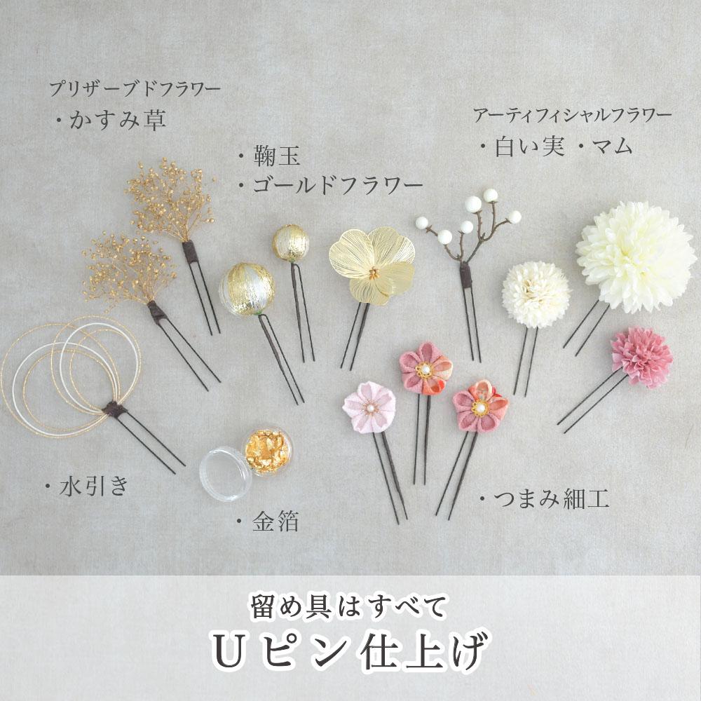 ◉お花やパーツは全てUピンに、それぞれ独立して取り付けてあります。