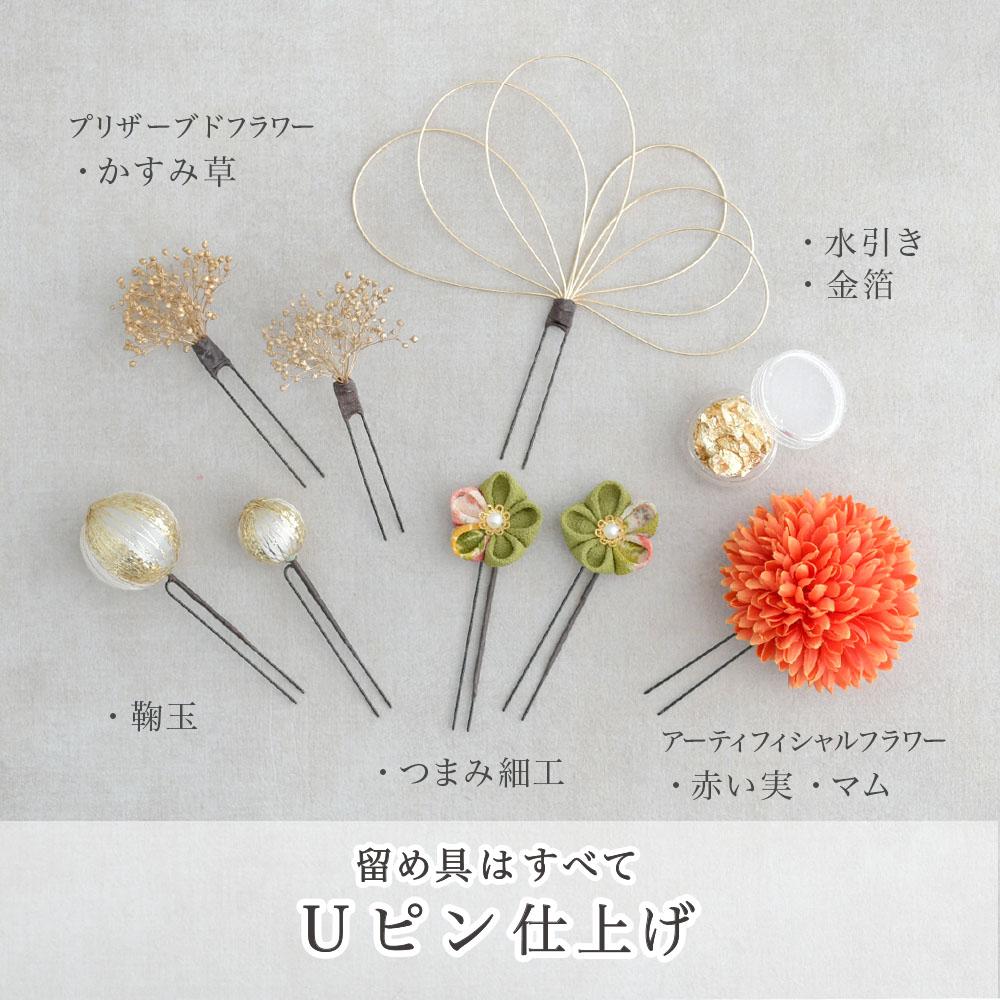 その日のヘアスタイルによって自由に一輪一輪配置できます。お花の数が多い場合でも、アメピンを追加して簡単にしっかりと固定できます。