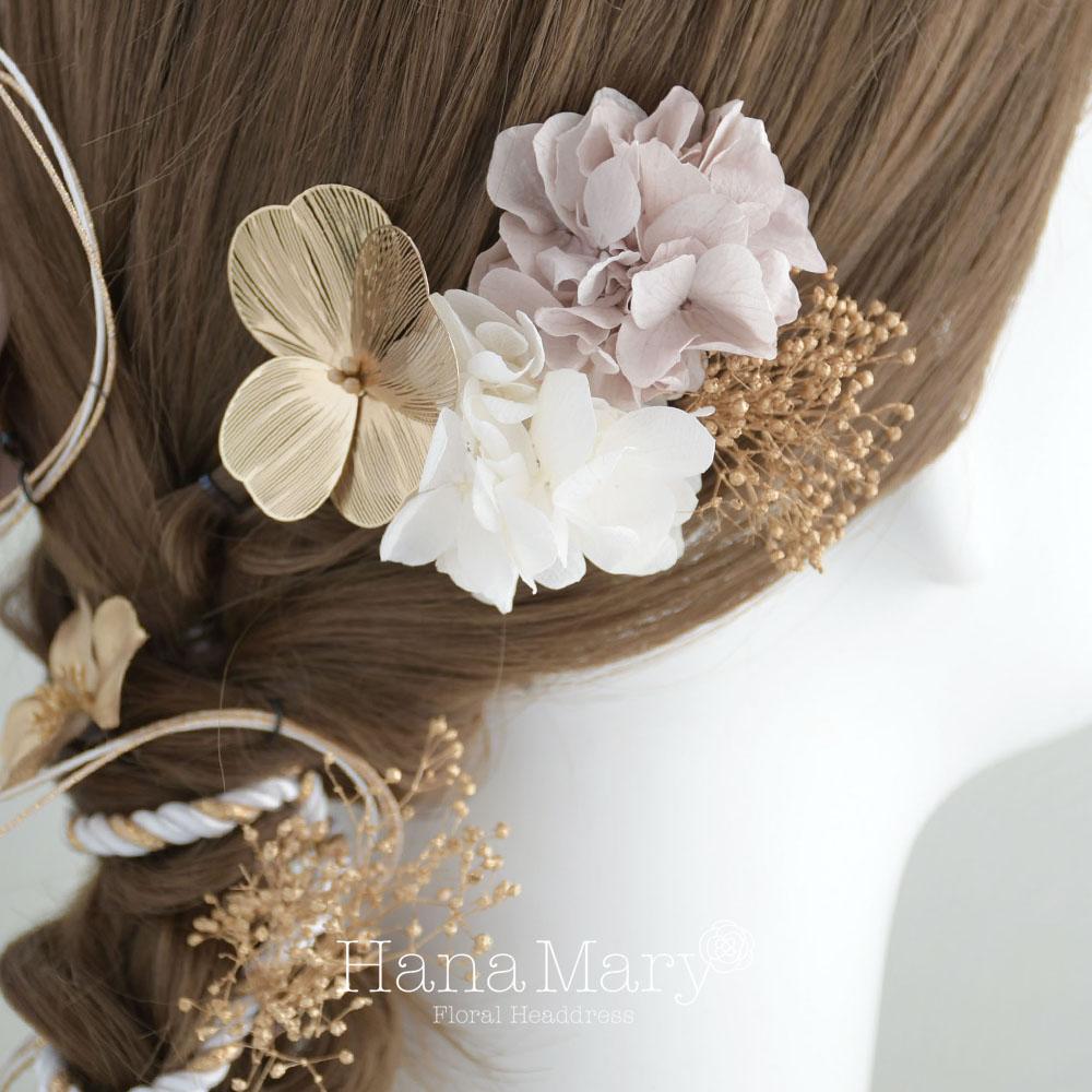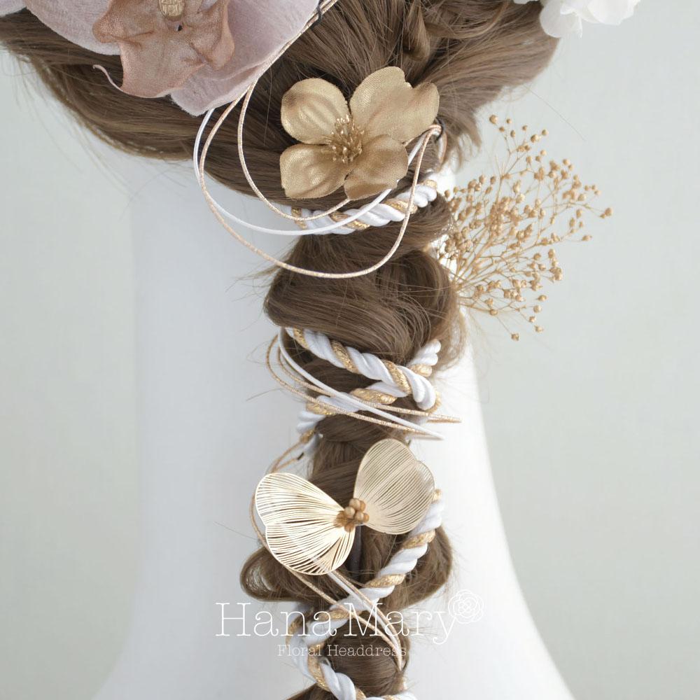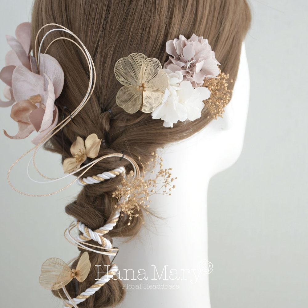 HanaMaryの髪飾りは生花をリアルに再現したアートフラワーと呼ばれるハイクオリティーな造花を使用しています。耐久性に優れ、成人式・卒業式やウェディングなどに何度でも繰り返し使用することができます。
