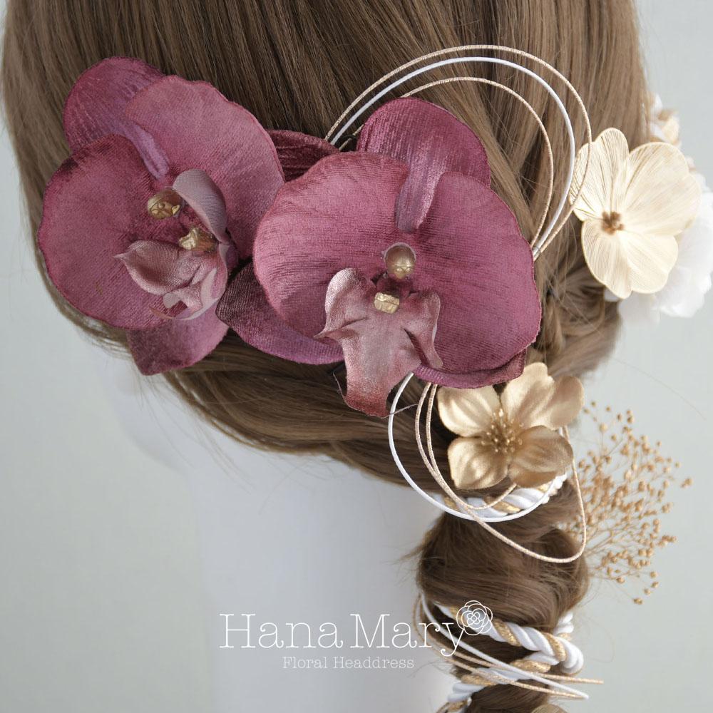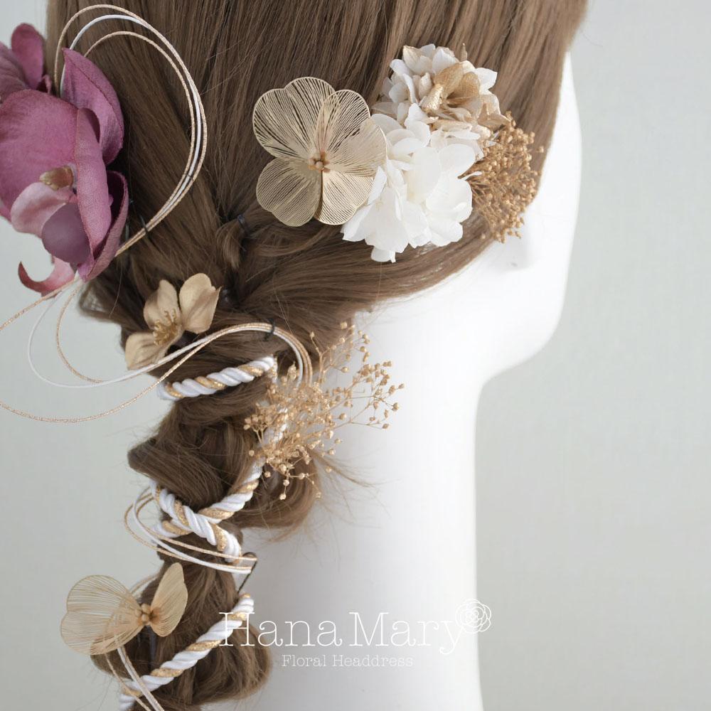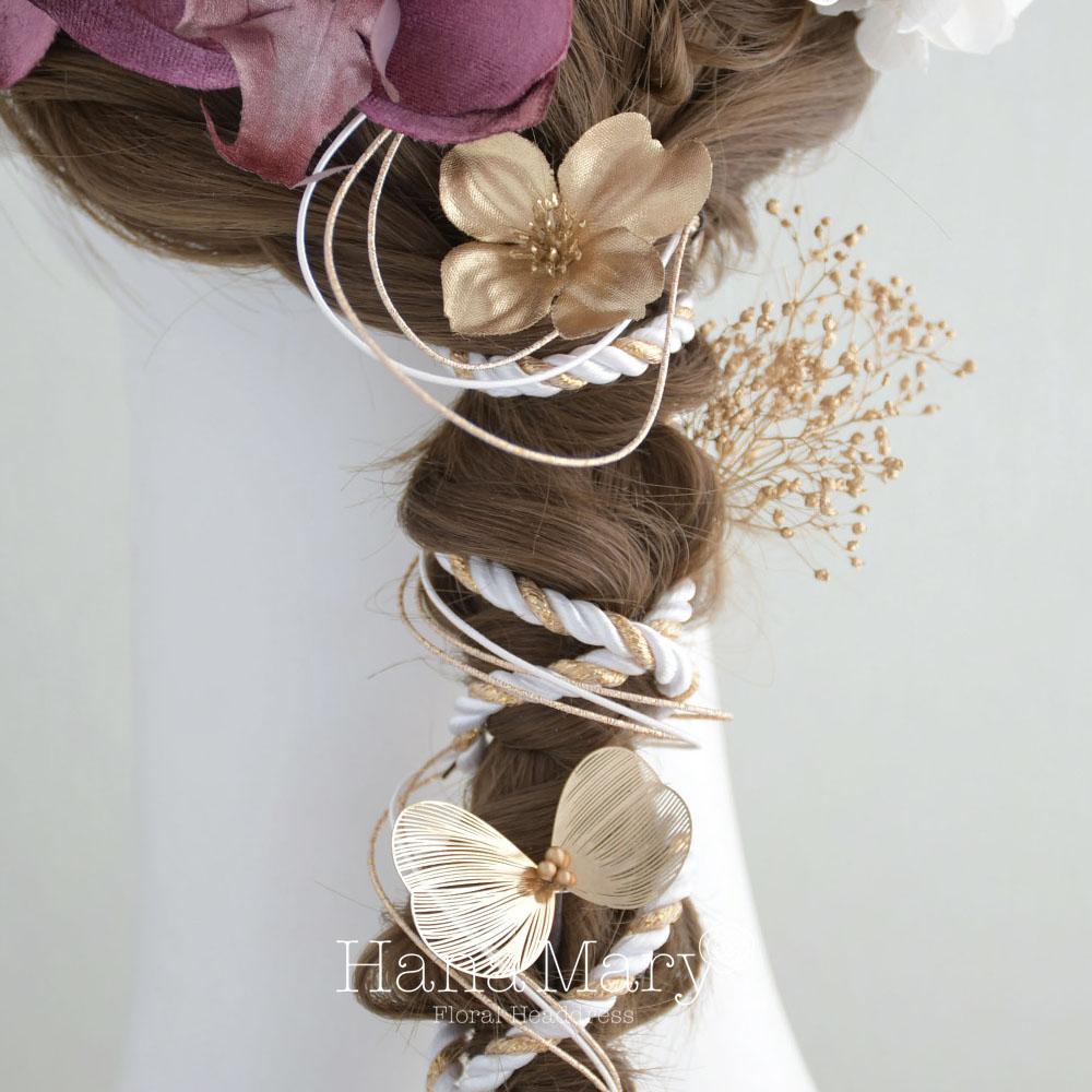 HanaMaryの髪飾りは生花をリアルに再現したアートフラワーと呼ばれるハイクオリティーな造花を使用しています。耐久性に優れ、成人式・卒業式やウェディングなどに何度でも繰り返し使用することができます。