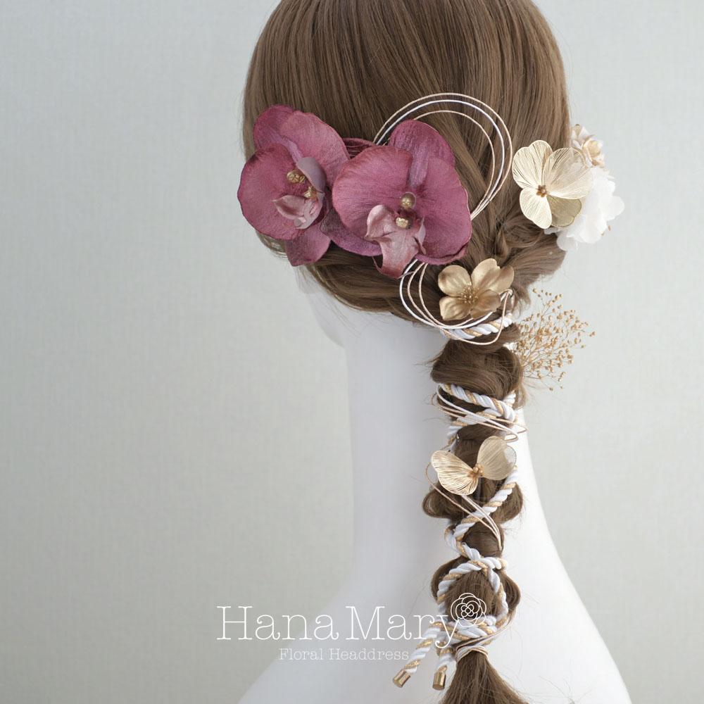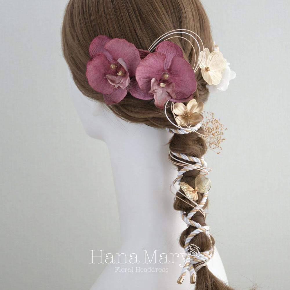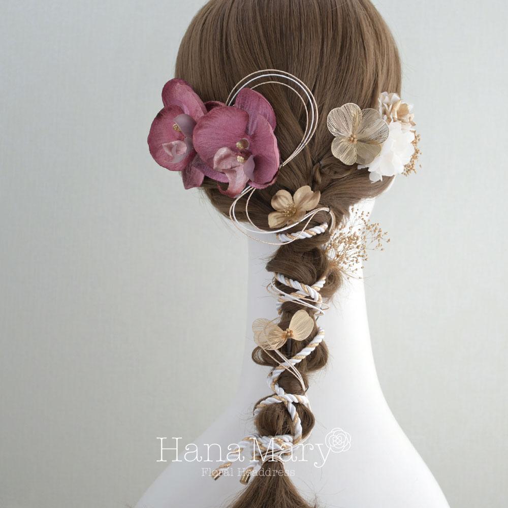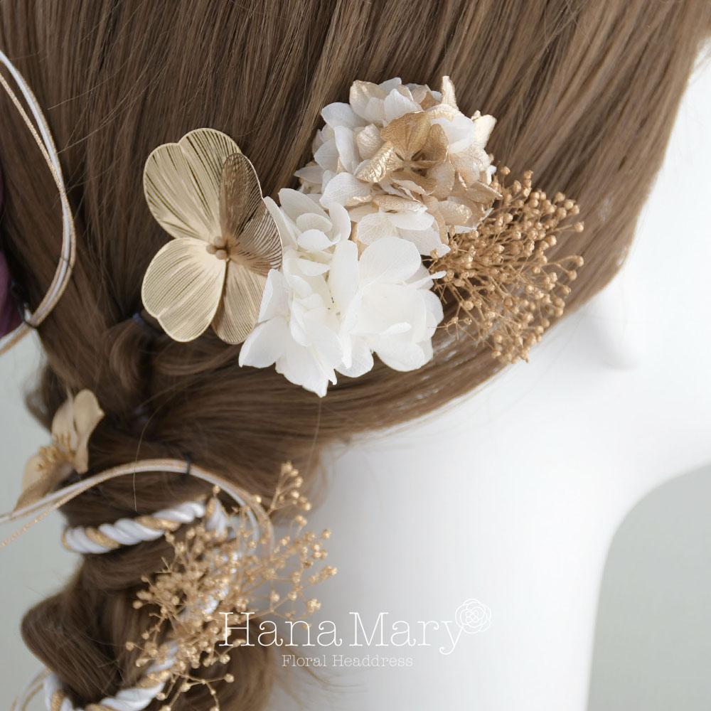 HanaMaryの髪飾りは生花をリアルに再現したアートフラワーと呼ばれるハイクオリティーな造花を使用しています。耐久性に優れ、成人式・卒業式やウェディングなどに何度でも繰り返し使用することができます。