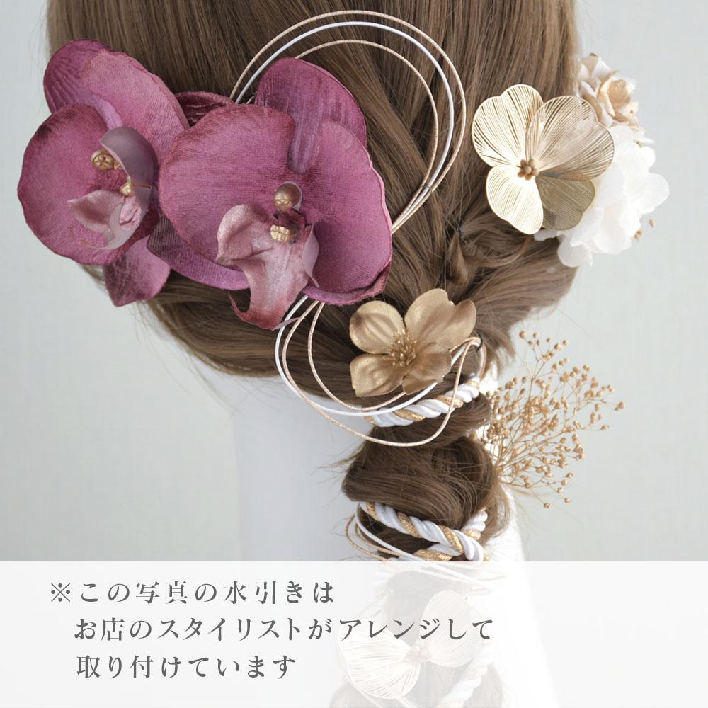 上品で可愛らしい胡蝶蘭のお花を、あみ下ろしのヘアに合うようアレンジした髪飾りです。