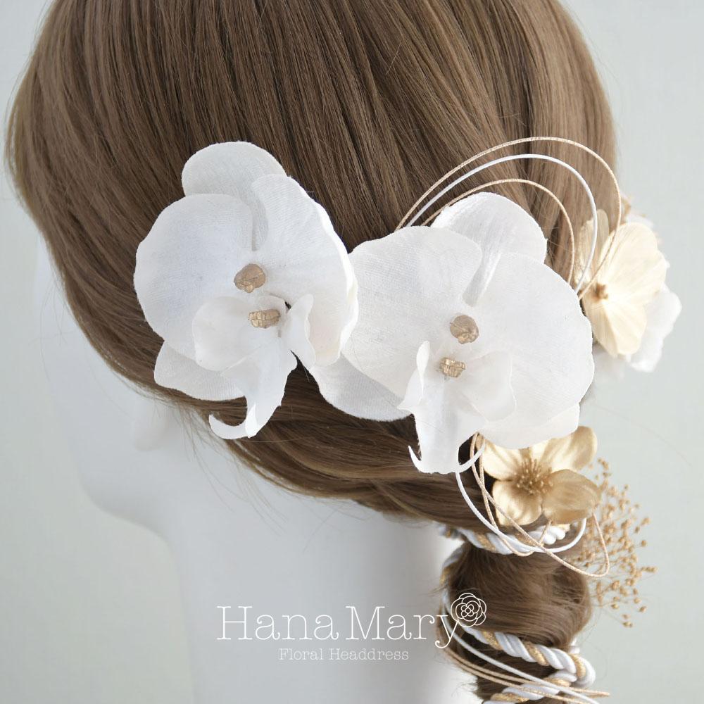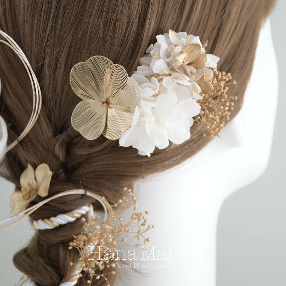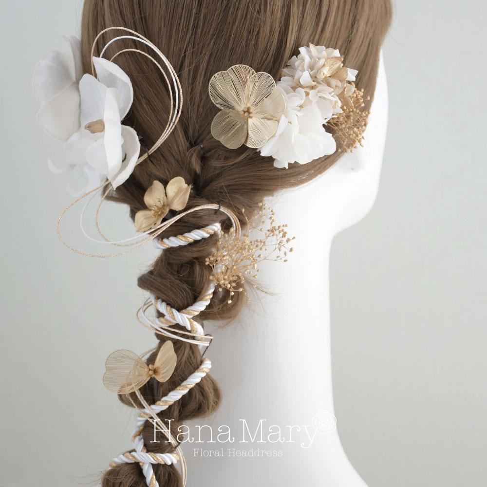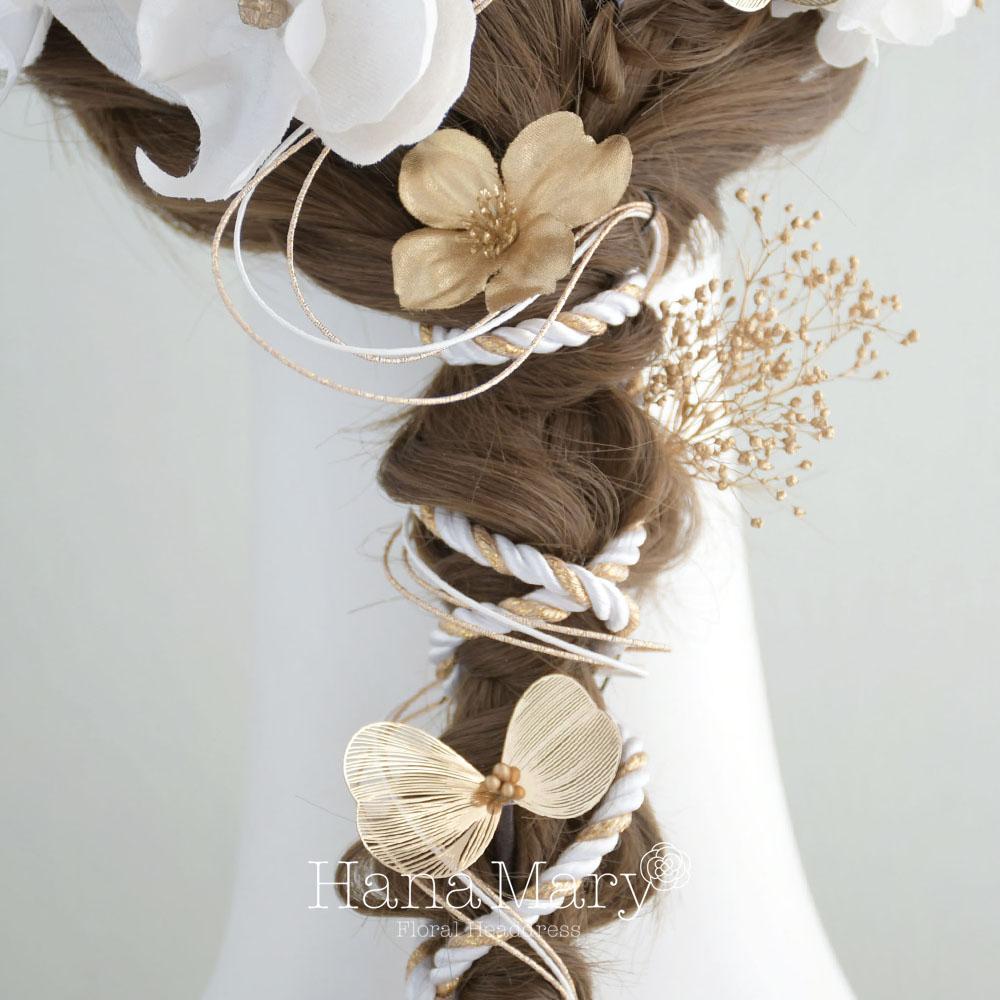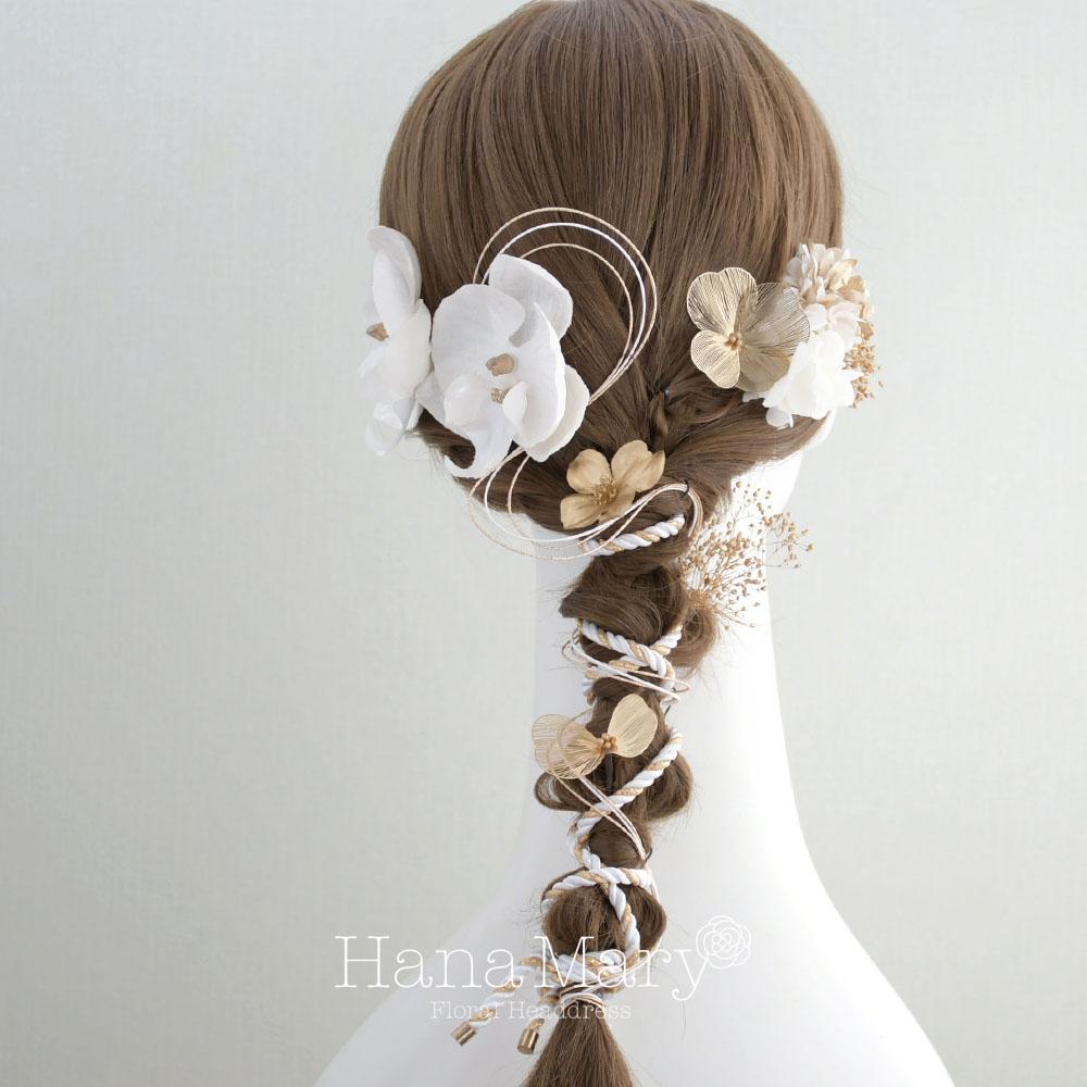 HanaMaryの髪飾りは生花をリアルに再現したアートフラワーと呼ばれるハイクオリティーな造花を使用しています。耐久性に優れ、成人式・卒業式やウェディングなどに何度でも繰り返し使用することができます。