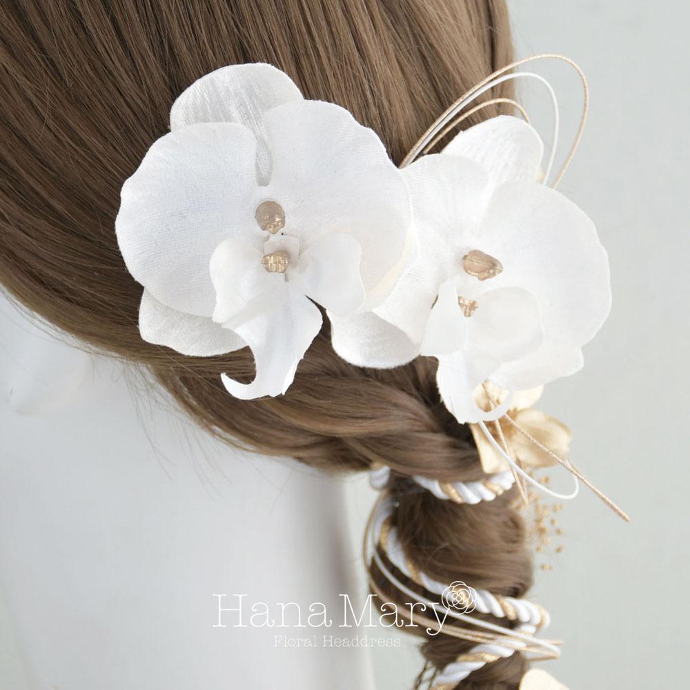 ベロア素材の胡蝶蘭をあみ下ろしに 髪飾り 卒業式 成人式【白】袴 振袖 着物