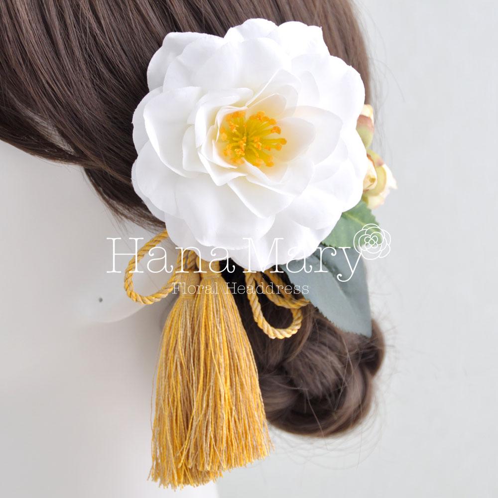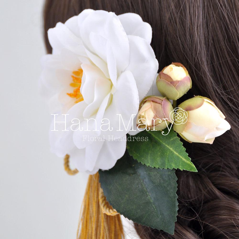 HanaMaryの髪飾りは生花をリアルに再現したアートフラワーと呼ばれるハイクオリティーな造花を使用しています。耐久性に優れ、成人式・卒業式やウェディングなどに何度でも繰り返し使用することができます。