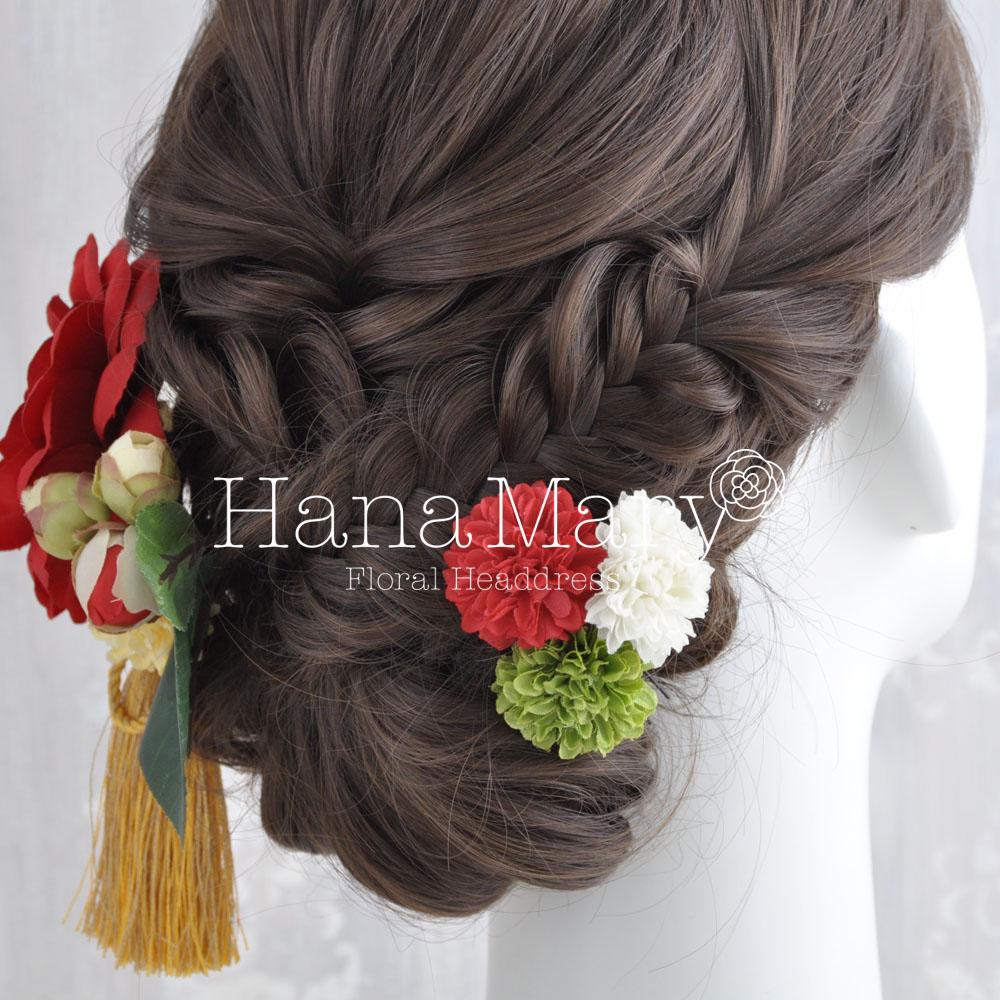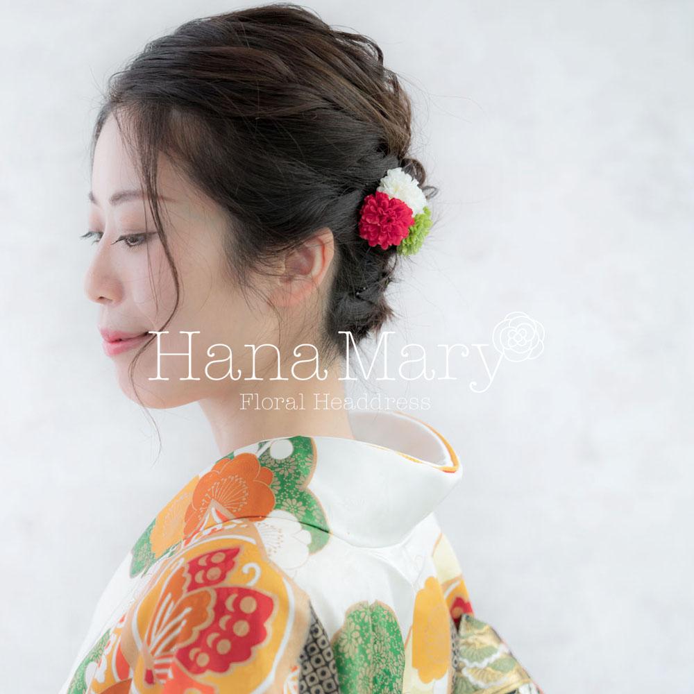 HanaMaryの髪飾りは生花をリアルに再現したアートフラワーと呼ばれるハイクオリティーな造花を使用しています。耐久性に優れ、成人式・卒業式やウェディングなどに何度でも繰り返し使用することができます。